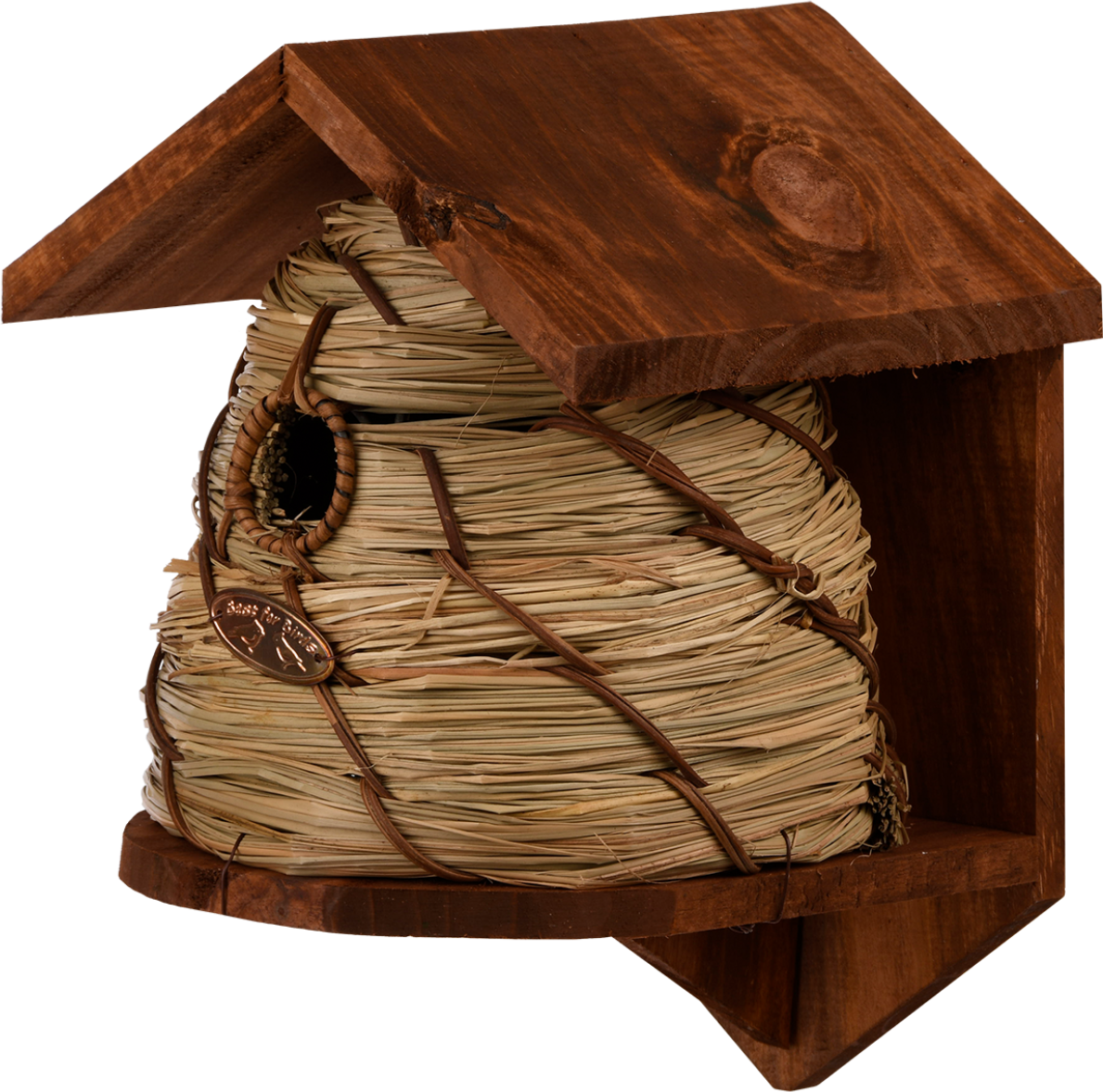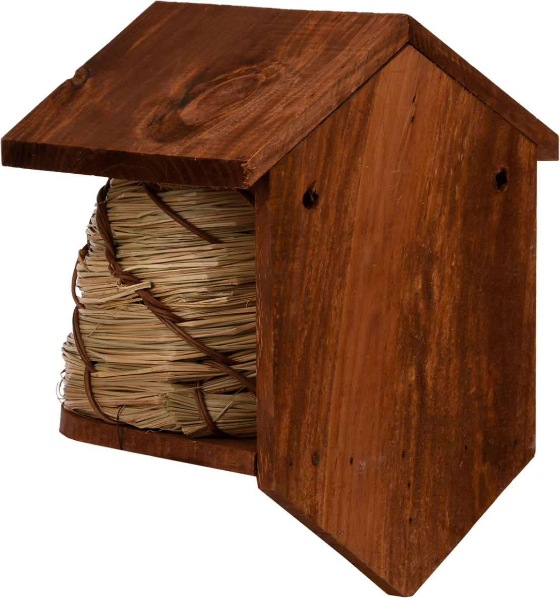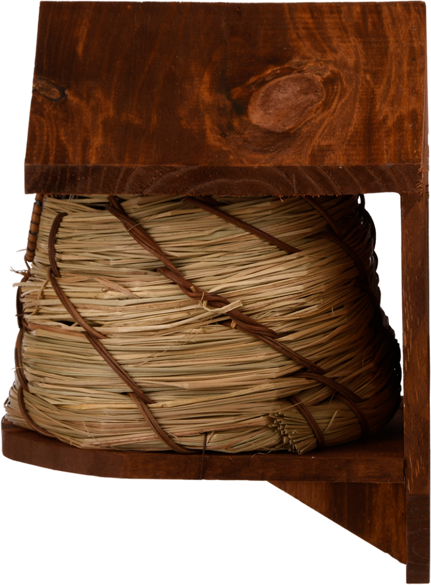 This nesting box is shaped like a beehive and features an entry hole with a diameter of 27 mm, making it a popular nesting place for many species of titmouse. The nesting box can also be used as a shelter when needed and is best placed about two metres up a tree, or sheltered spot in between bushes or vines. The entry hole should always be easily accessible.