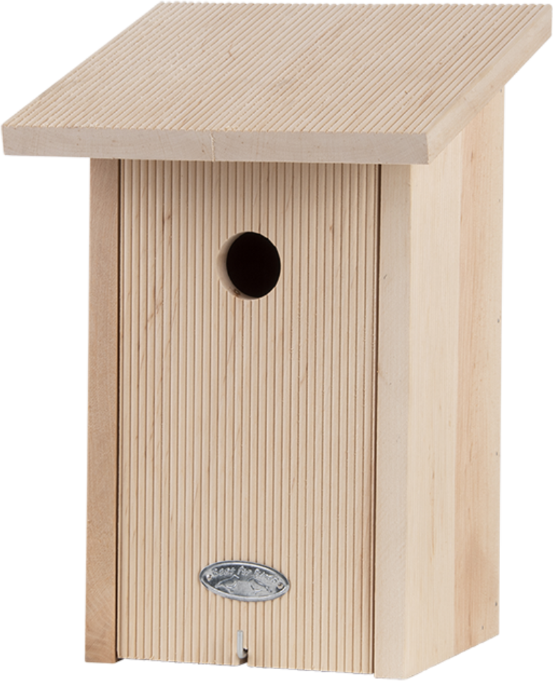 This delightful nesting box was specially designed for Parus major. However, the little billy biter, tree sparrow, and pied flycatcher will also be pleased to find their new home here. They can use the box for nesting and as a habitat. Because the inside is roughened and there are grooves at the front, the young birds can easily climb out of the nest. The thick walls provide perfect insulation, and the construction ensures that flooding is prevented. In short: an ideal feel-good place for useful insects.