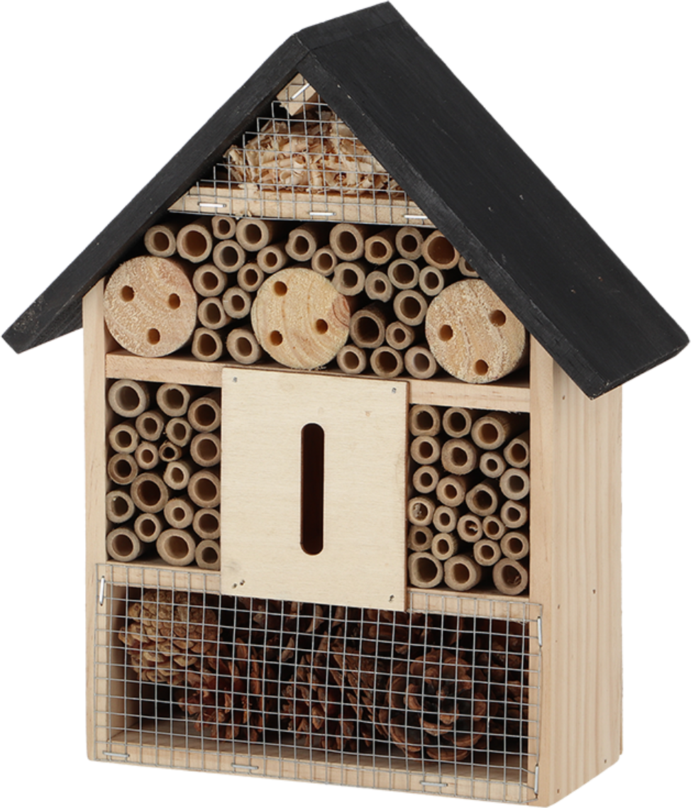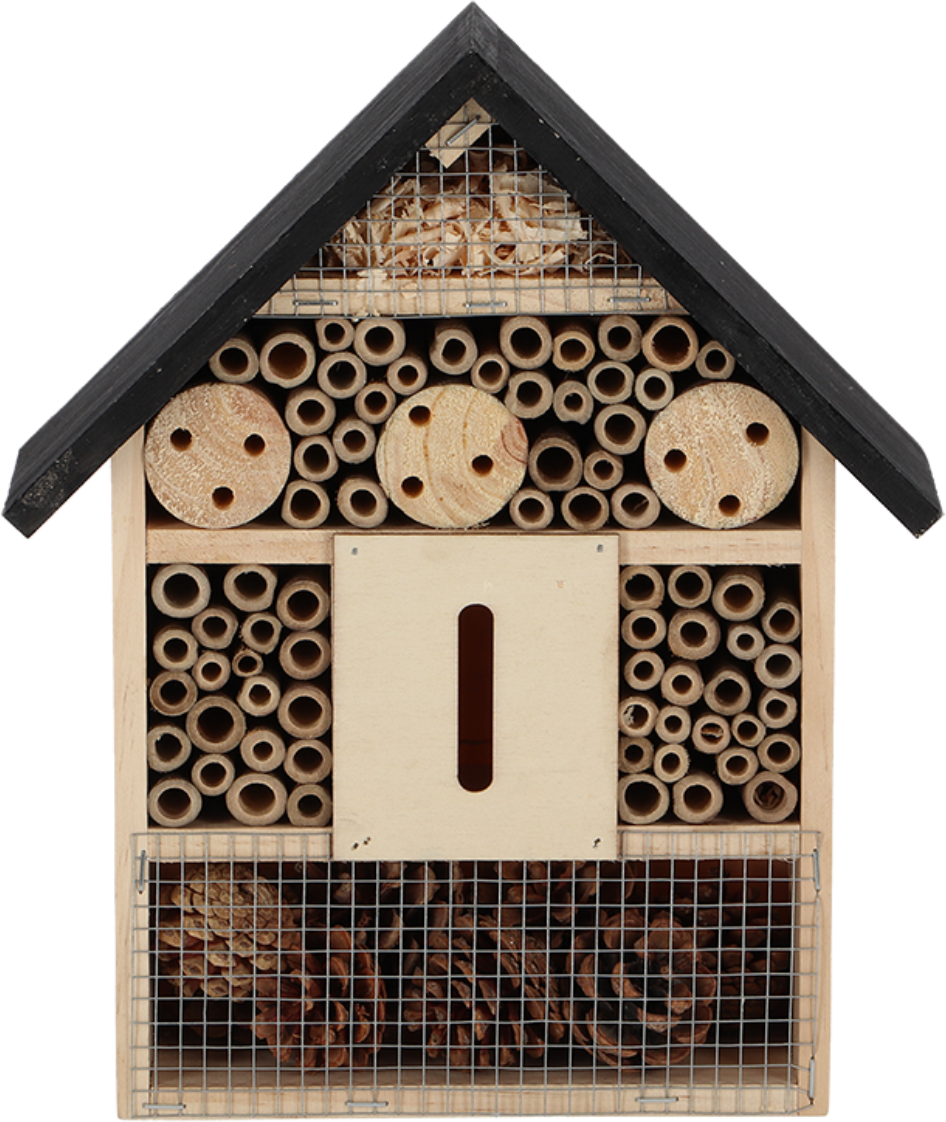 The insect hotel provides an ideal nesting and hibernation site for industrious insects. This model has plenty of rooms in a wide variety of designs, making it a terrific way to attract solitary bees, butterflies, and other useful insects to your garden.