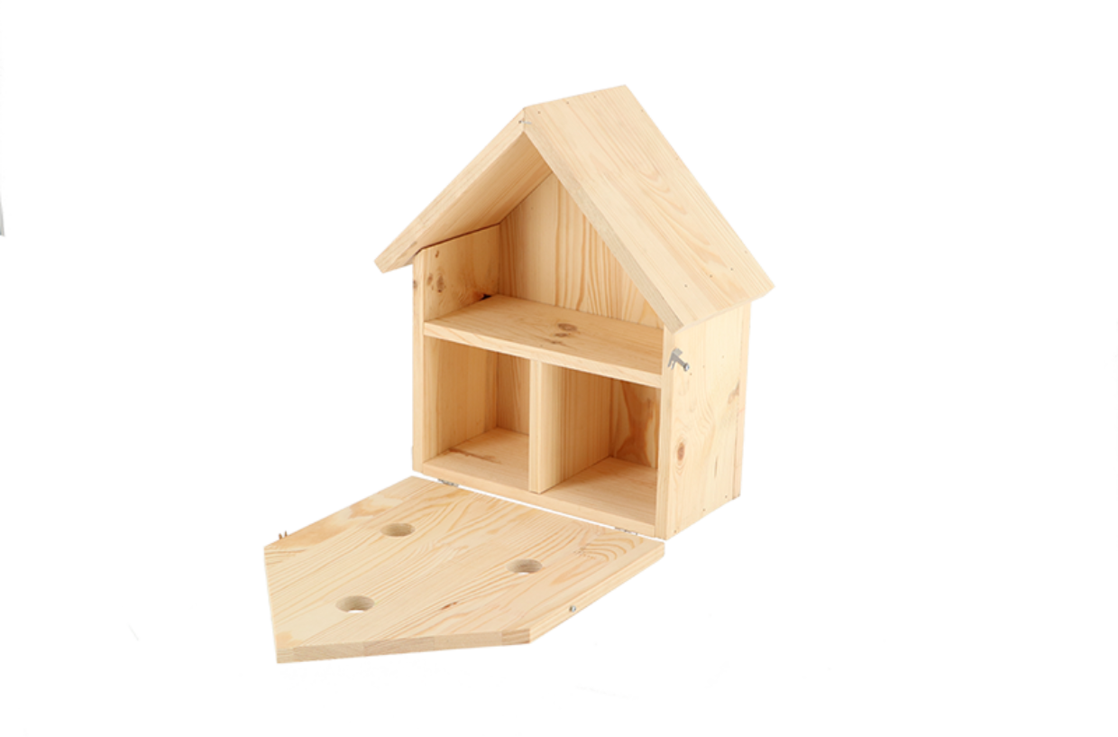 The sparrow population has drastically been reduced due to lack of habitat. For this reason, it's very important to provide birds with a suitable nesting place. Since sparrows like to have company, there are three comfortable residential units in the birdhouse. Tree sparrows, great tits and blue tits will also feel at home in this villa.