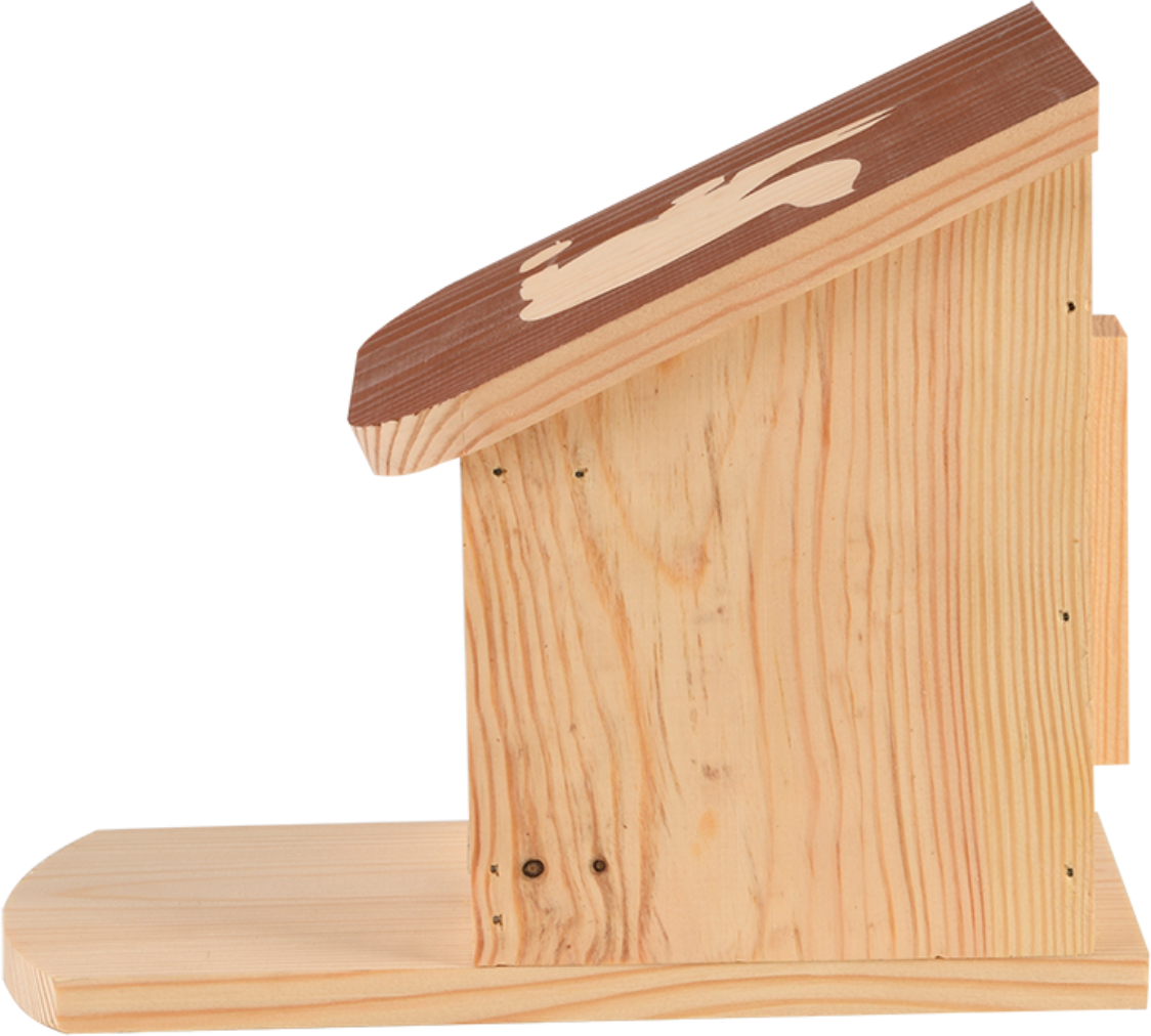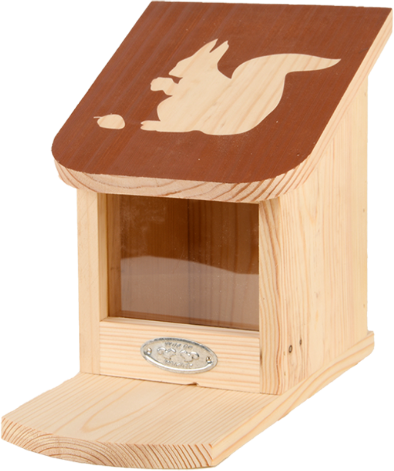 The lovingly crafted design already makes it clear - this little house is the ideal resting place for squirrels to have a snack. They often carry away their bounty with them to stock up for the winter. Fill it with peanuts, walnuts, hazelnuts and sunflower seeds. This not only makes it easier for you to observe these pretty visitors to your garden, but also helps them forage for food.