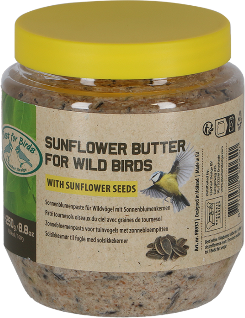 Birds are very busy all year round: in spring, they mate, build nests and raise their young and in summer they moult. From autumn onwards they build up their fat reserves to get through the cold winter season. This nutritious sunflower butter is the ideal way to help wild birds find food all year round!
