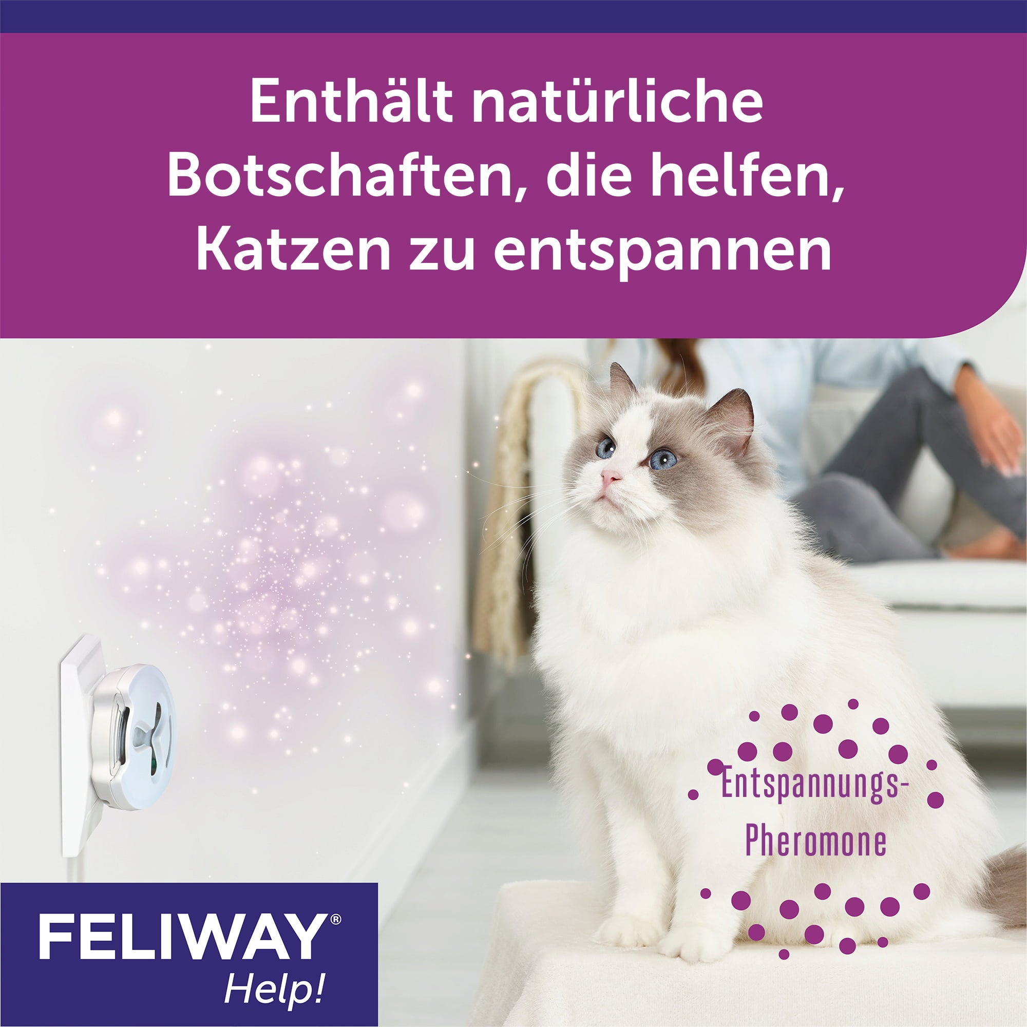 This innovative solution is extremely easy to use: place the diffuser in your cat's favourite room ideally two days before a situation likely to cause stress. One cartridge lasts approximately seven days. A single diffuser covers up to 50 square metres of living space.