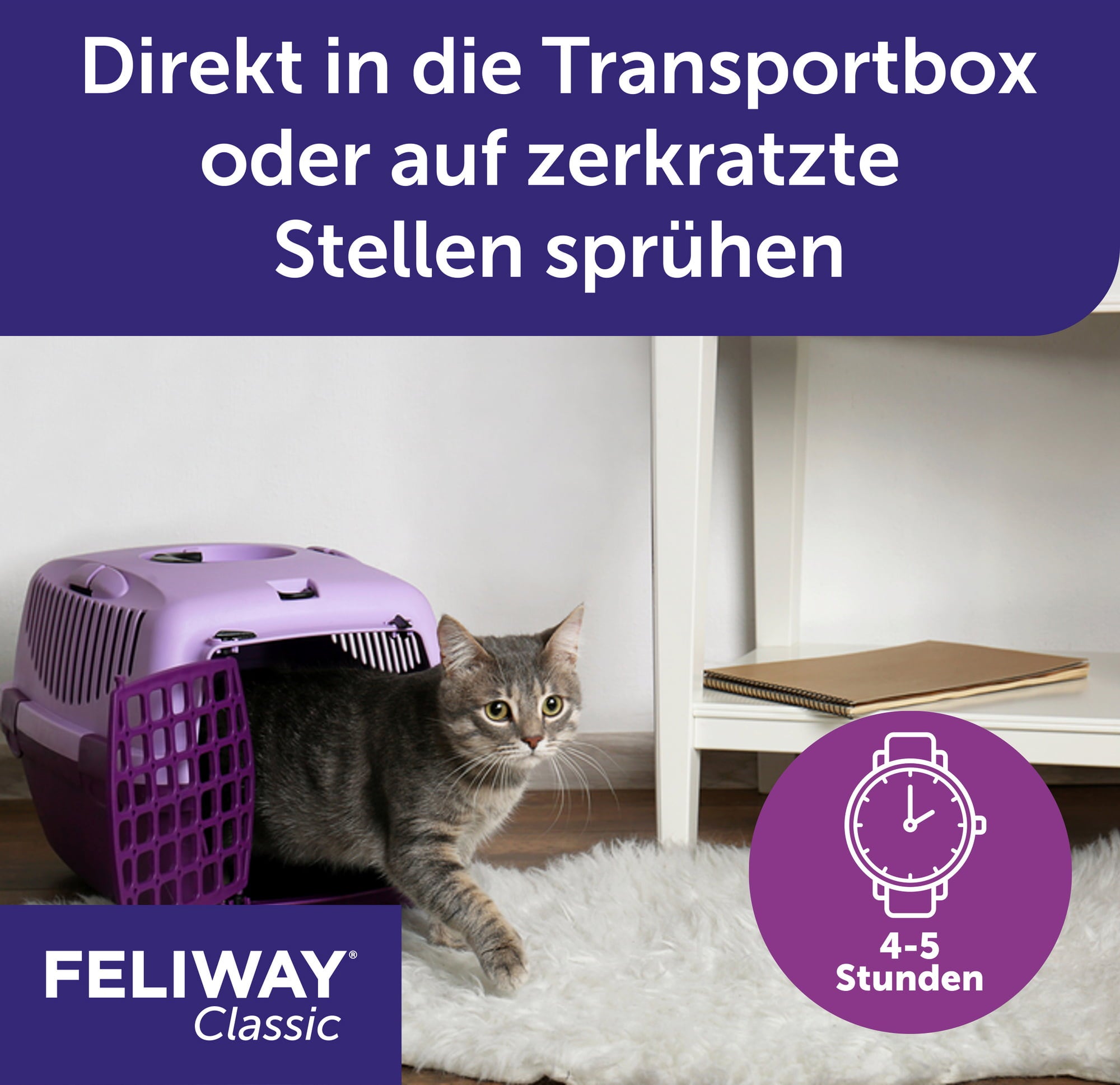 Clean the areas marked with urine or scratch marks with warm water and soap. Spray the affected area with the Classic Spray (approximately 1–2 times per day). Please note, the cat should not come near the sprayed area for about 15 minutes.