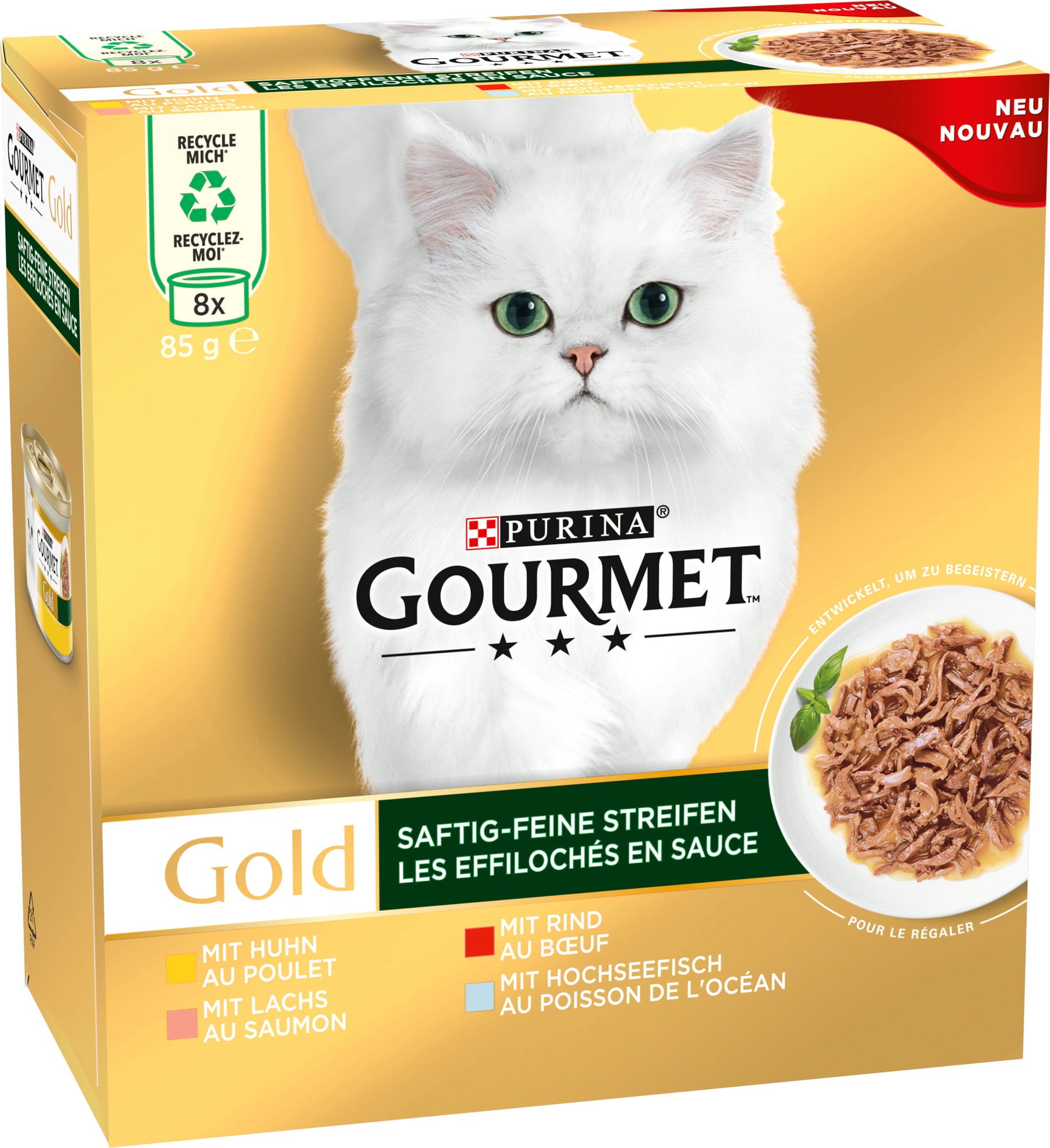 Gourmet Gold "Juicy Tender Strips" pampers your cat with delicate strips in a delectable sauce - a true treat for your pet! The following four flavours offer plenty of variety: