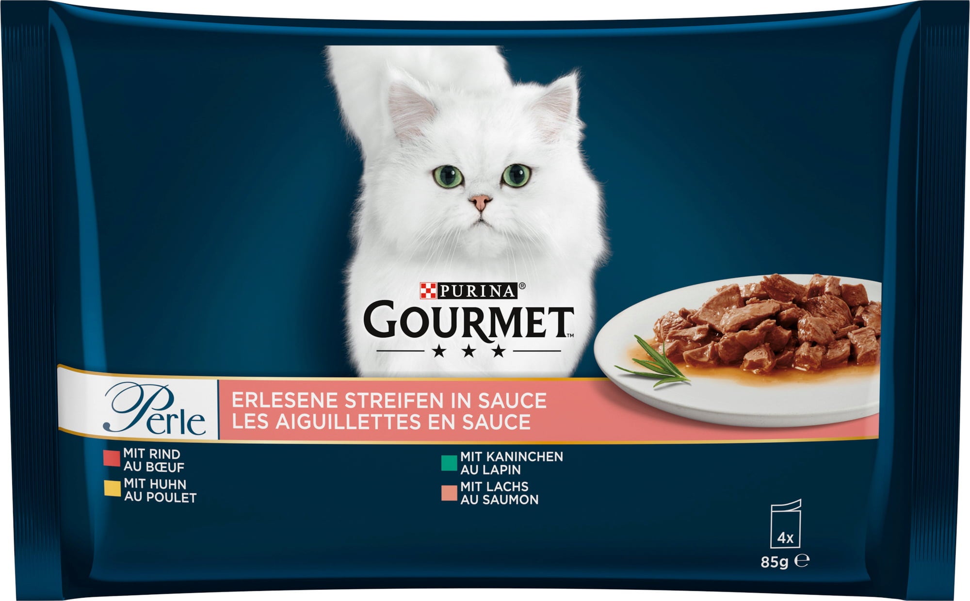 Gourmet Perle Exquisite Strips with Meat Mix and Salmon 4x85g, 340 g