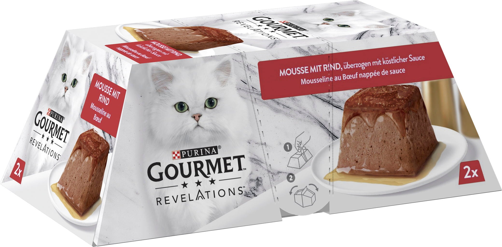 If you want to treat your cat to something truly special, then Gourmet "Revelations with Beef" is just the thing. Fine mousse, covered with a delicious sauce, offers delightful moments of enjoyment - for satisfied purring cats!