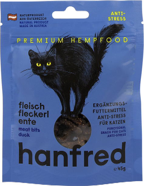 If your cat is sensitive to changes or stressful situations, this snack could be a good choice. Hanfred Meat Bites are made with 95% meat and 5% hemp powder – completely free from grain and artificial additives.