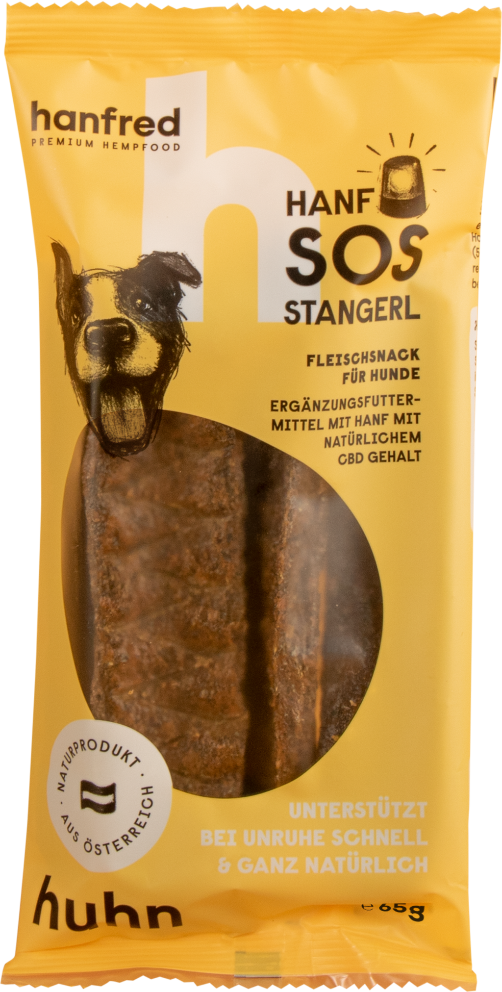 SOS Chicken Sticks for dogs consists of dried chicken meat mixed with hemp powder.