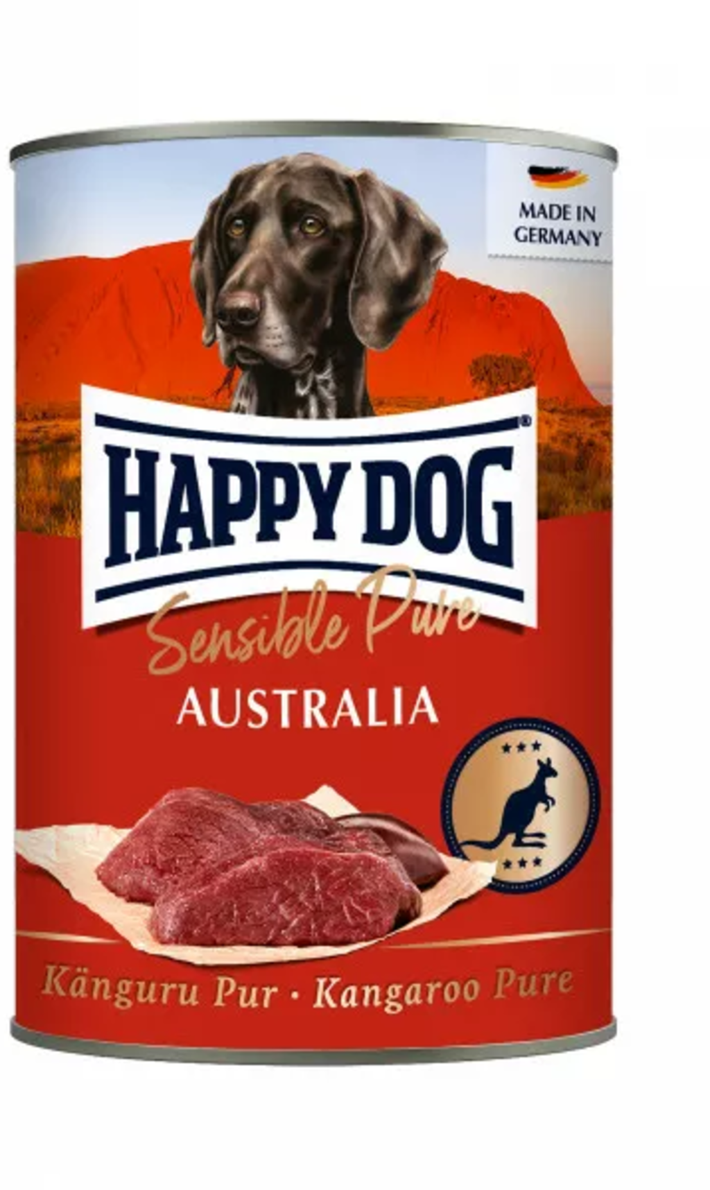 Happy Dog Sensible Pure Australia is an incredibly tasty wet food for nutritionally sensitive pets who suffer from food intolerances. The recipe of tender kangaroo meat and offal is gluten and soya-free and provides excellent variety in your furry friend's diet. Thanks to valuable vitamins and minerals, this delicious wet food supports a harmonious dog life! 100% animal protein from kangaroo, with no added vegetable additives, flavourings or colourings.