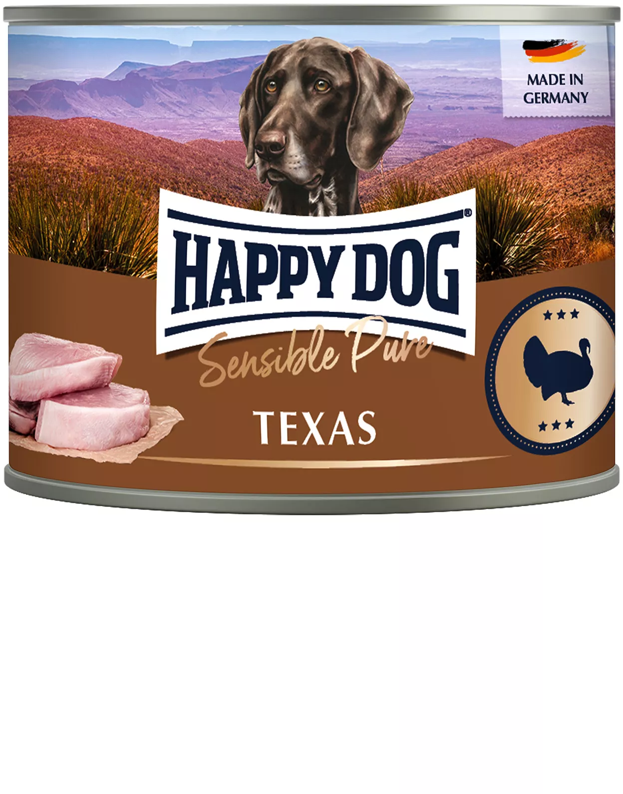 Happy Dog Sensible Pure Texas wet food consists exclusively of high-quality turkey meat and nutrient-rich offal - with no added grains, soya or sugar. Instead, it is enriched with an extra portion of vital vitamins, minerals and trace elements!