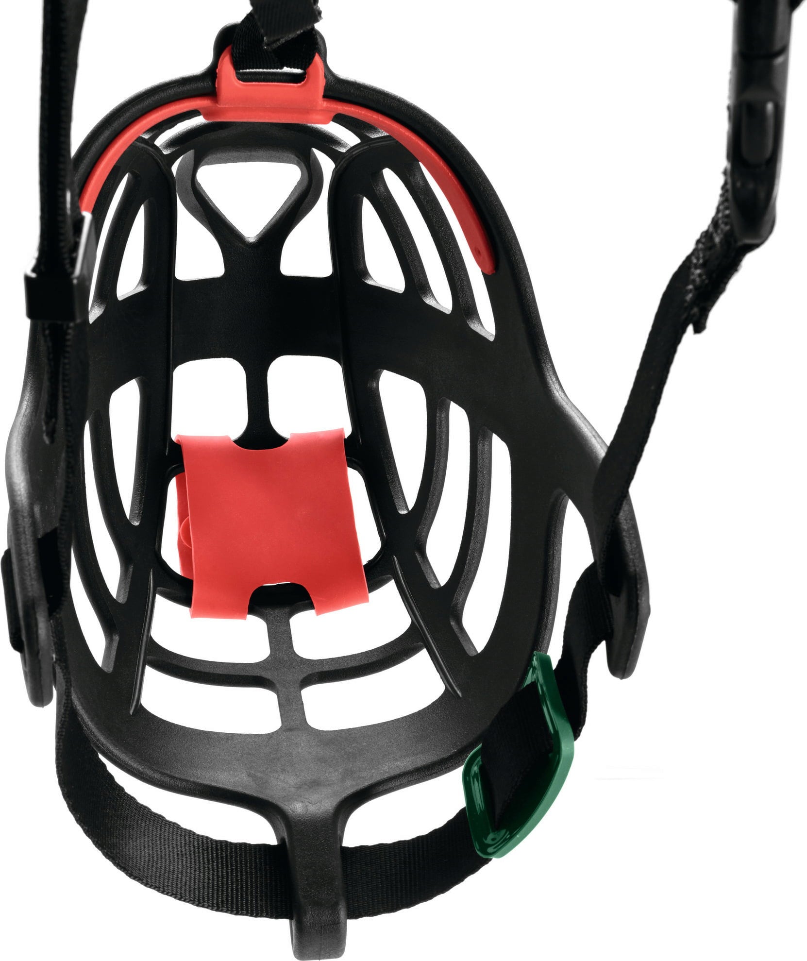 A standout feature is the removable poison bait guard, which offers protection against dangerous baits, toxic plants, or harmful debris. The adjustable nylon straps run securely down the centre of the head and behind the ears, ensuring a snug, reliable fit in any situation.