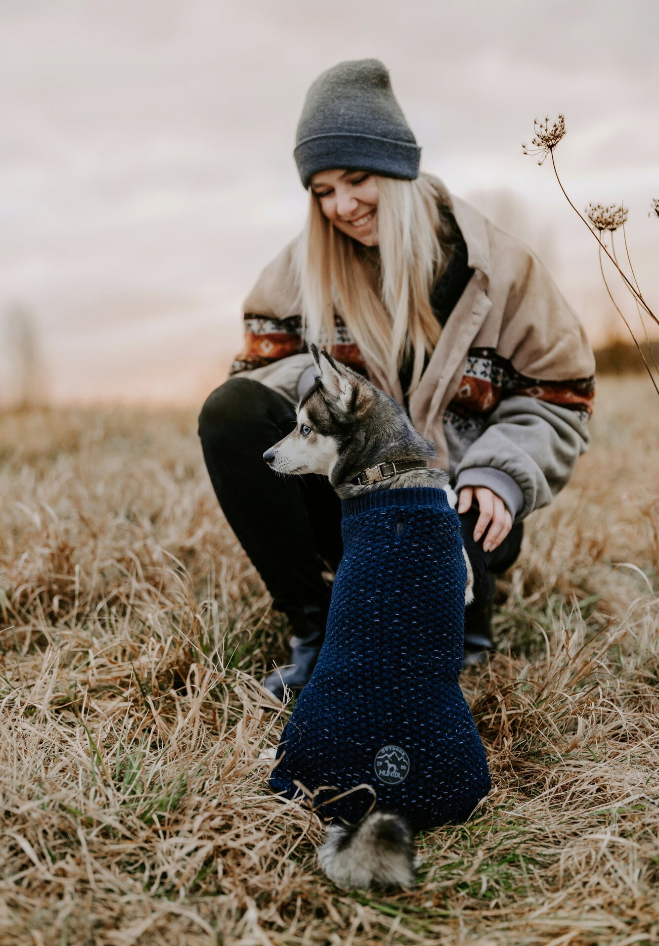 The Finja dog jumper by HUNTER offers a stylish appearance along with enhanced visibility in low-light conditions. This fashionable piece not only looks great but also prioritises your dog's safety with its reflective yarn, making it perfect for rainy or dark environments. Made from acrylic knit material, the jumper provides slight warmth, making it ideal for dogs that are prone to getting cold. This is particularly beneficial for young dogs, those with health issues, or breeds with minimal undercoat.