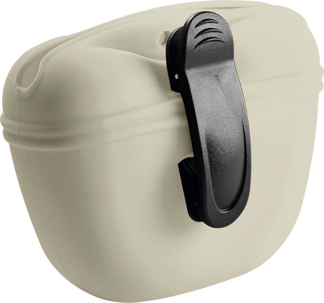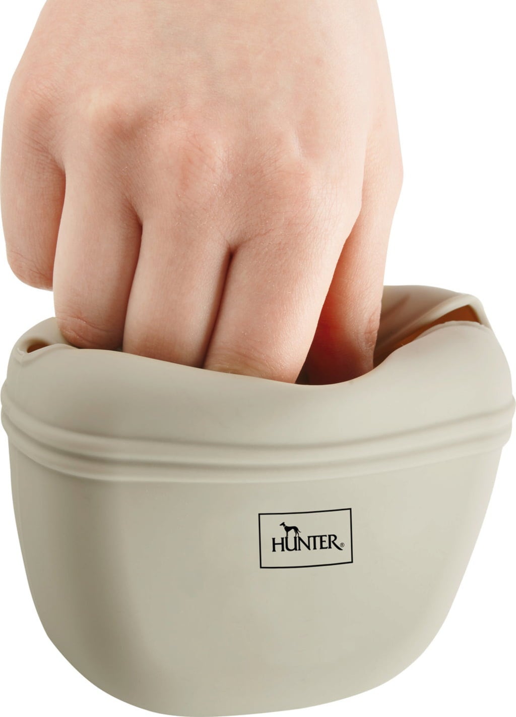 Cleverly designed snack bags like the Lugo by HUNTER make everyday life easier for dog owners and their furry friends. This silicone bag features a large loop on the back, allowing it to be easily attached to standard belts. Additionally, treats can be quickly accessed with one hand due to the self-closing magnetic closure, which is very practical for training or travel.