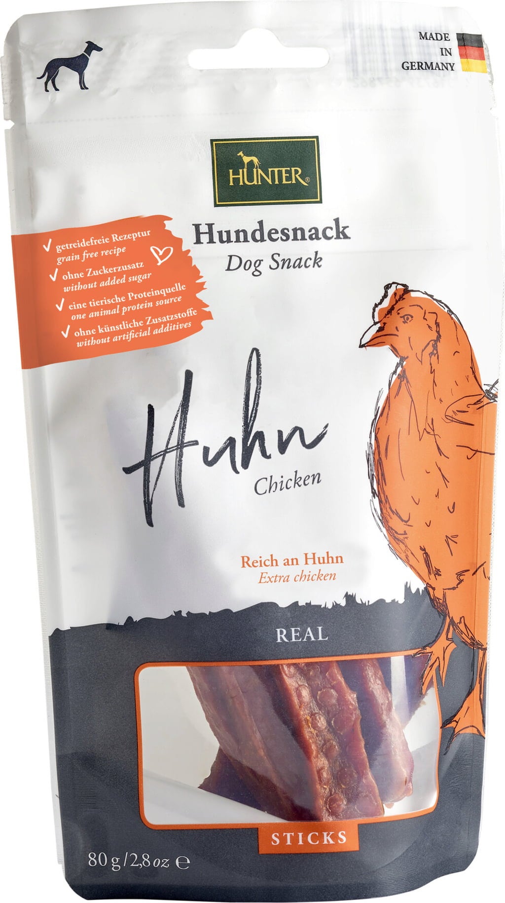 English reviews written for Hunter Real Chicken Sticks Dog Snack