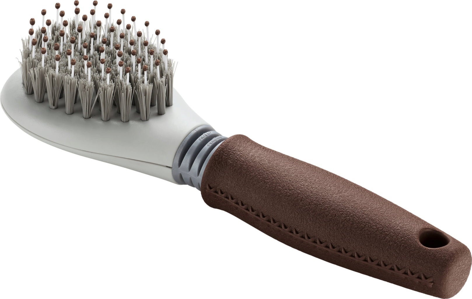 - Double bristles for gentle grooming of the topcoat and undercoat