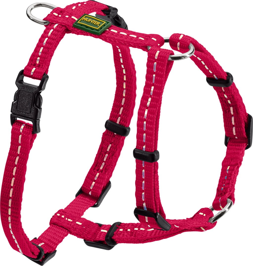 With this chest harness, Hunter has focussed on the smallest of our four-legged friends. The design is specially adapted for puppies and smaller dogs. The bright colours are perfectly accentuated with great reflective stripes. Made from robust nylon and with an infinitely variable adjustment system, it is ideal for everyday use.