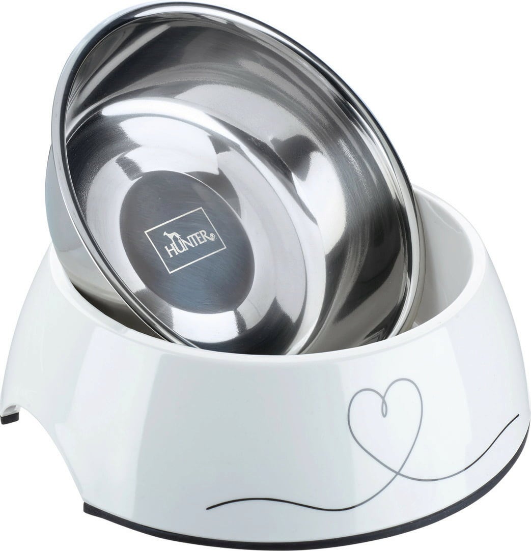 The elegant Valencia melamine bowl with its simple and elegant heart-shaped pattern design provides your furry friend with delicious meals! Made from melamine, the scratch and impact-resistant bowl is equipped with a removable stainless steel inner bowl. Both bowls can be easily wiped clean with a damp cloth but they are also dishwasher-safe.
