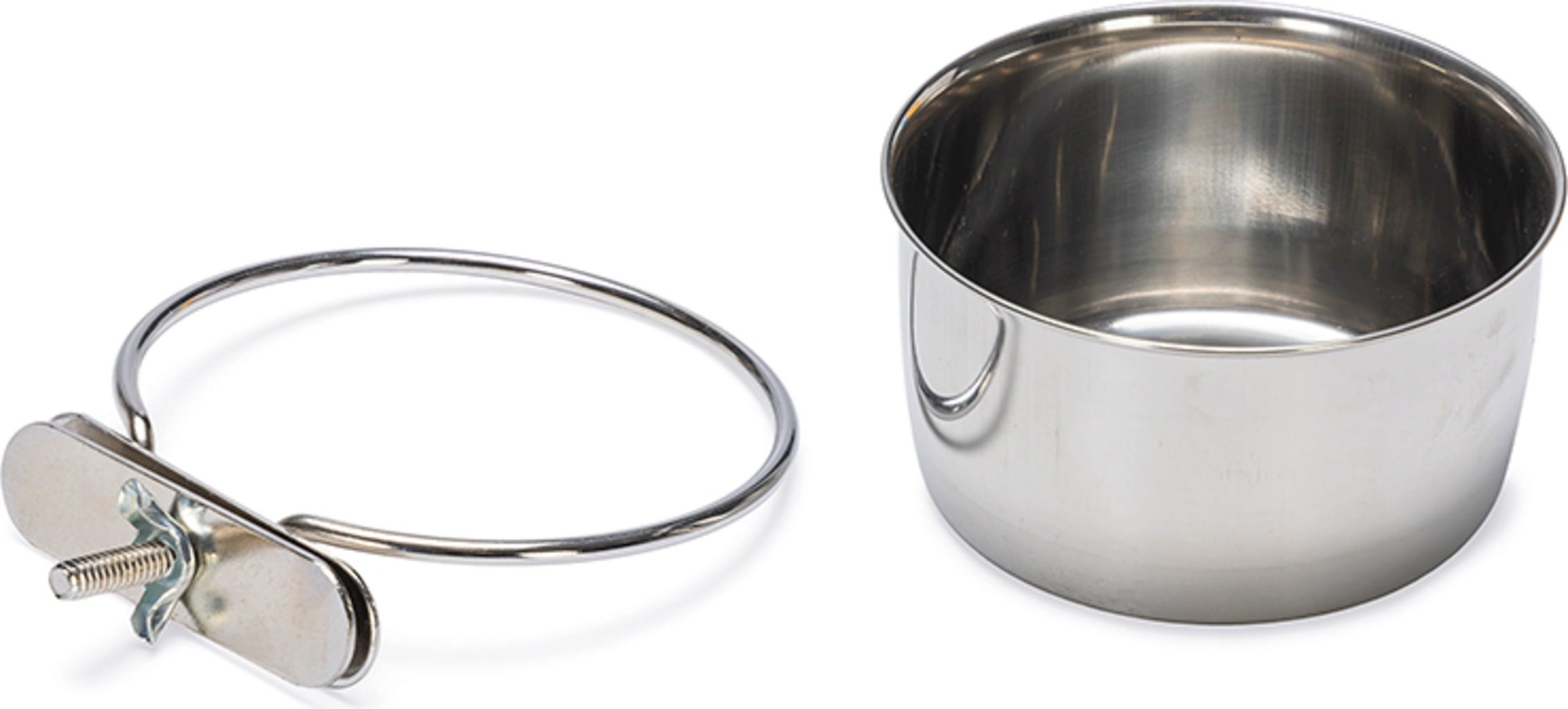 - Consists of a holder and removable bowl (the holder can remain attached to the cage grille permanently, while the bowl can be easily removed for cleaning and refilling)