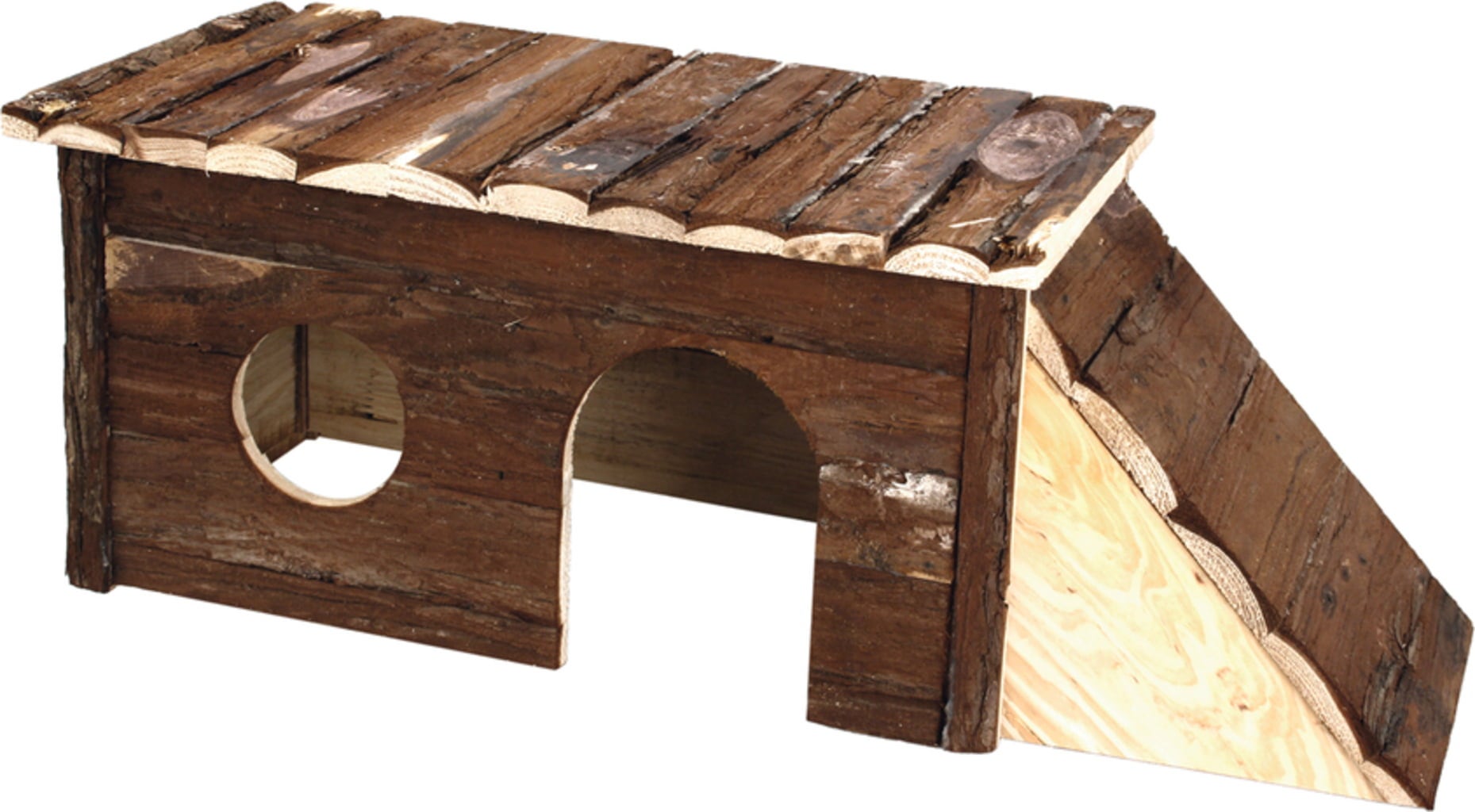 Play, climb, relax - everything is possible in this little house! It offers your small animal a safe retreat and invites hiding and playing. Additionally, the bark of the wood provides plenty of gnawing fun.