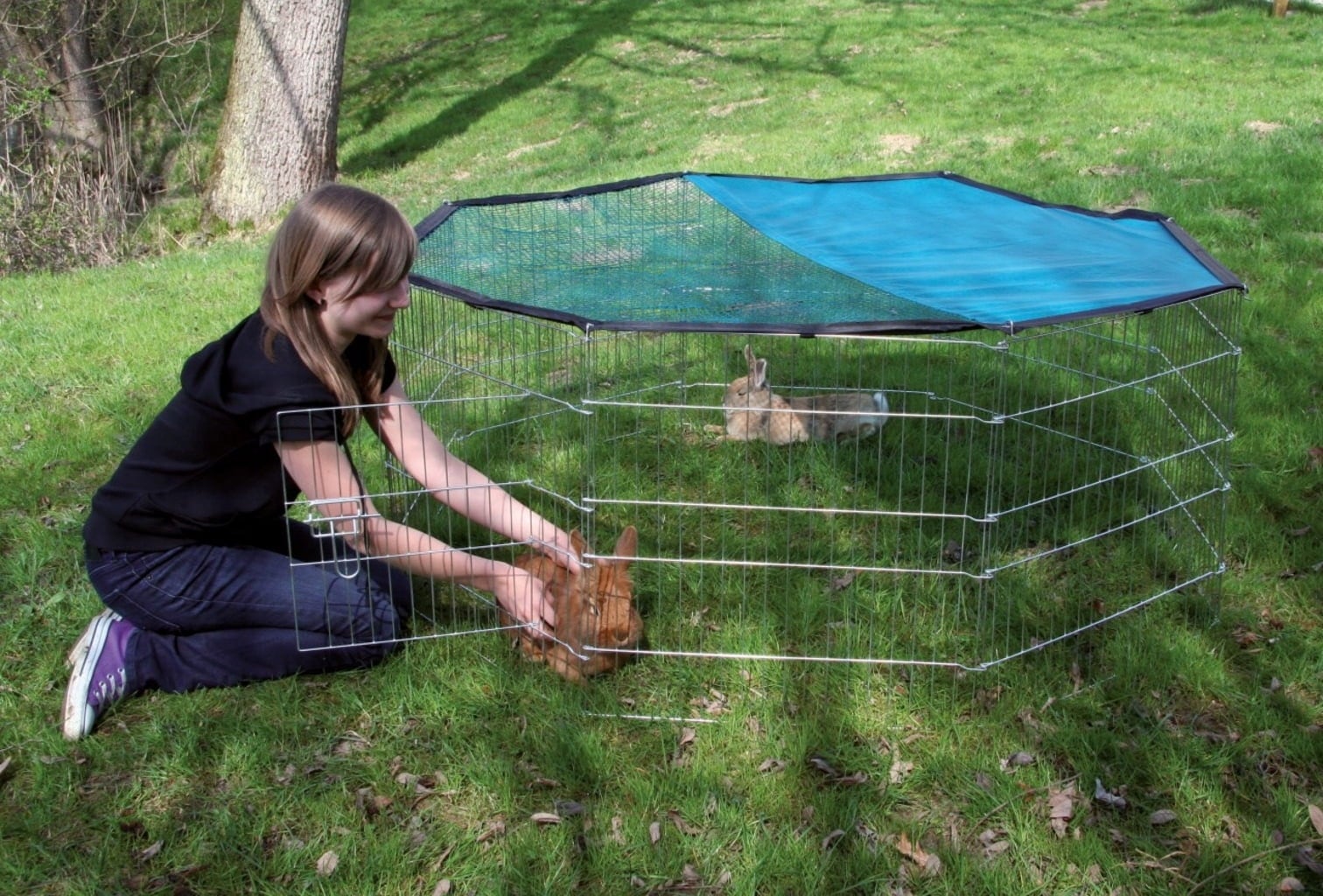 This free-range enclosure is suitable for rabbits and offers them a secure outdoor environment. It can also be used indoors when combined with the separately available nylon floor 82721.