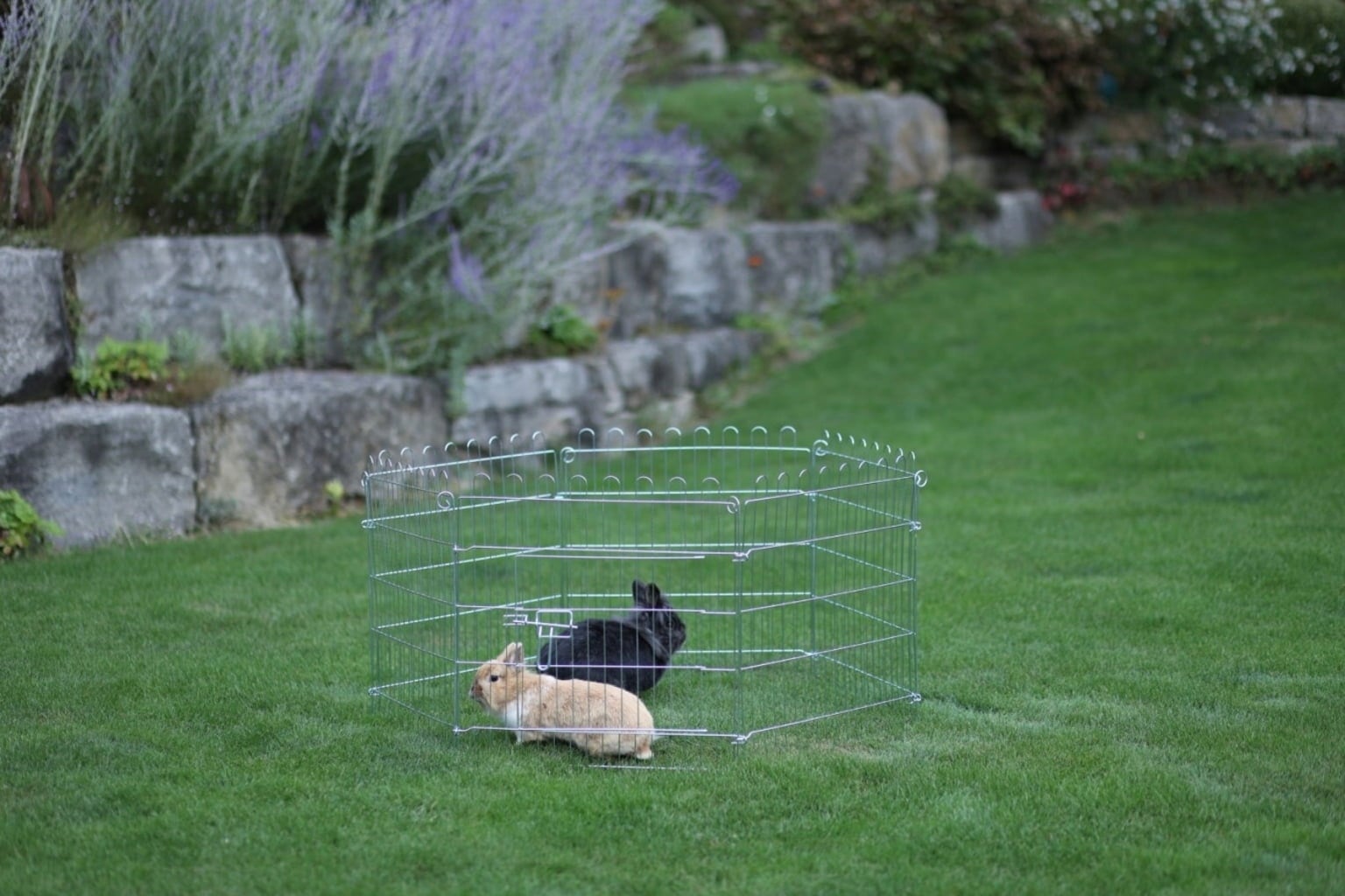 This outdoor enclosure is suitable for rabbits and provides them with a secure environment outside. When combined with the separately available nylon floor 82707, it is also suitable for indoor use.