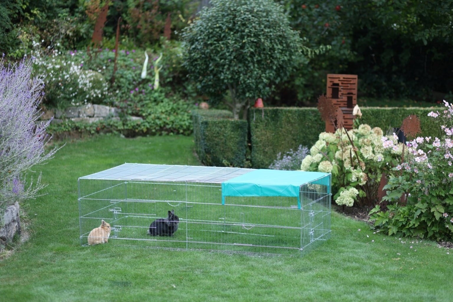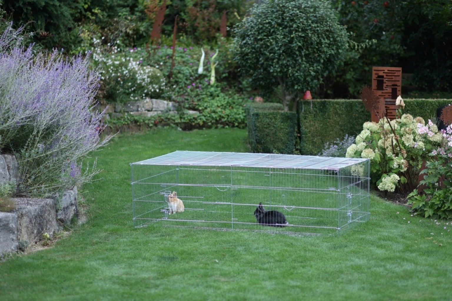 This outdoor exercise run is suitable for hares and large rabbits, providing them with a safe outdoor environment, optimally protected from birds of prey, martens, cats, and other intruders.