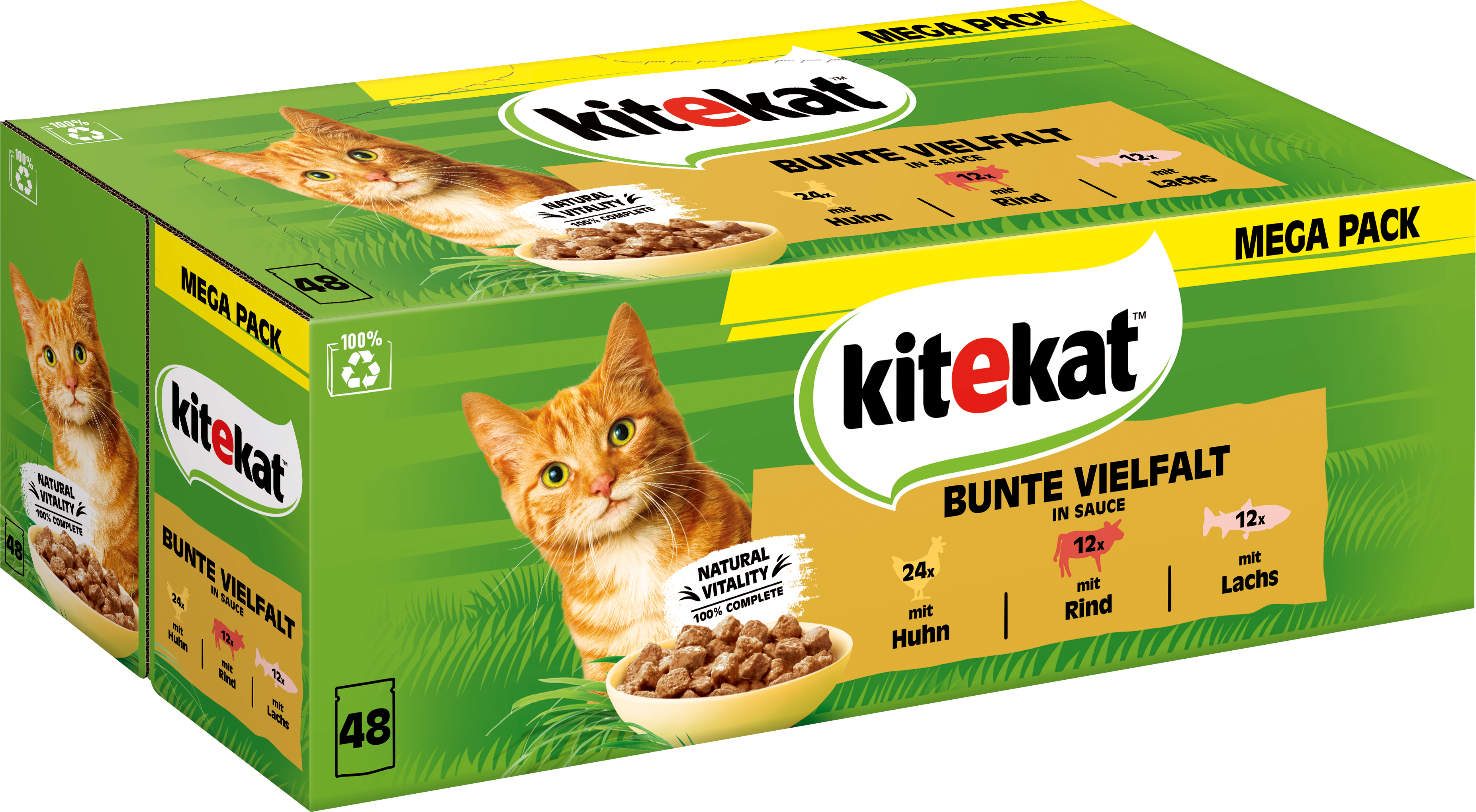 Kitekat Pouches 85g 48-Pack Colourful Variety in Sauce, 4.080 g
