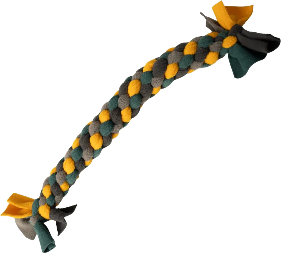 Bring fun into your dog-loving home with the Knot toy! This lovingly handcrafted, extremely robust dog toy is perfect for pulling and tugging, providing hours of playtime fun. The Knot toy is made from fabric remnants that occur in the production of other products by Knauder's Best. This not only makes this toy wonderfully colourful but also truly sustainable.