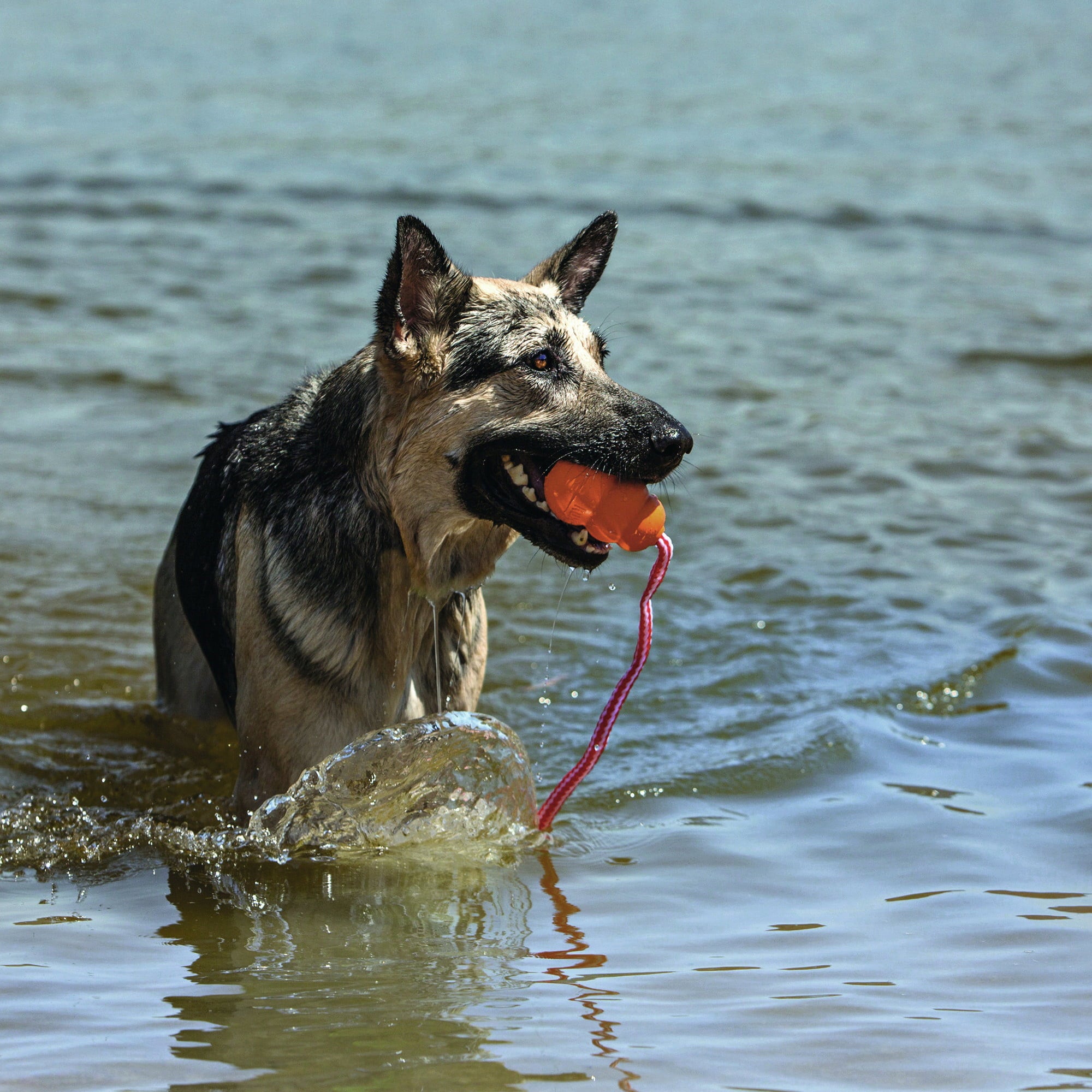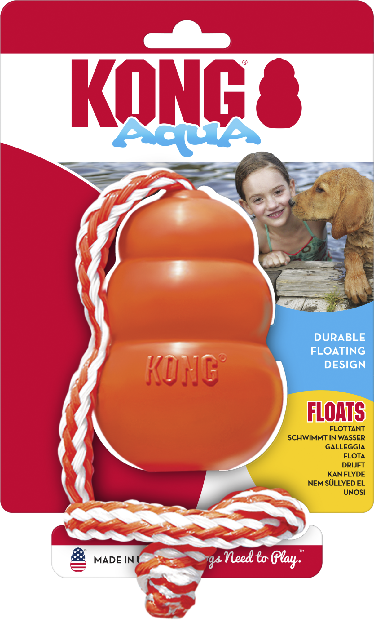 With the KONG® Aqua, your holiday at the seaside will never be short of entertainment! This dog toy, featuring a throw rope and a sponge core, floats on water and eagerly awaits your dog's rescue from the deep waters – or something like that. It's perfect for fetch games both in and out of the water!