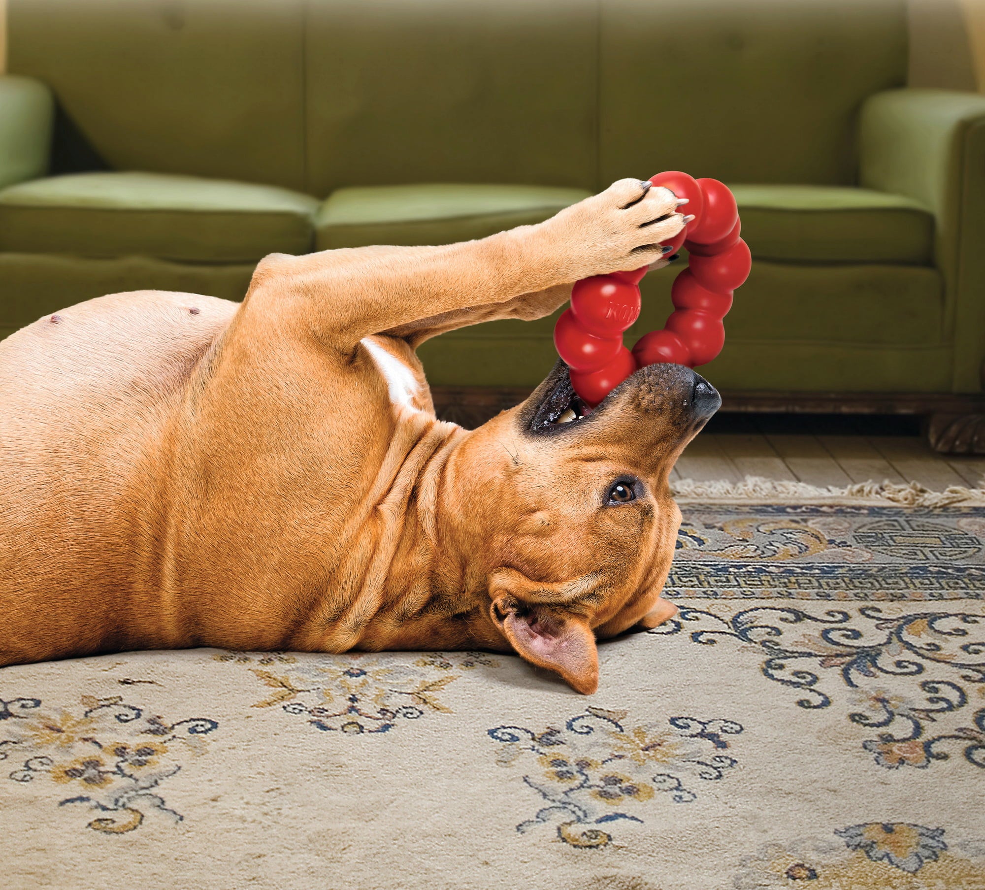 Robust and durable, in a bright colour, with numerous nubs: The KONG® Ring is crafted from durable natural rubber and offers great chewing joy every day!