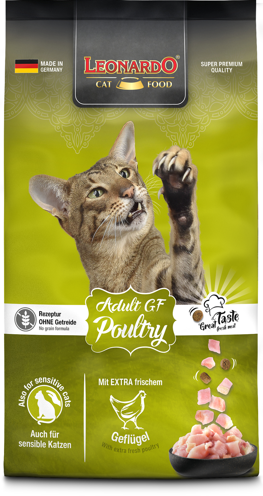 This grain-free dry food delights meat lovers with extra fresh poultry. The recipe is refined with krill, amaranth and chia seeds, and is tailored to the needs of cats with food intolerances.