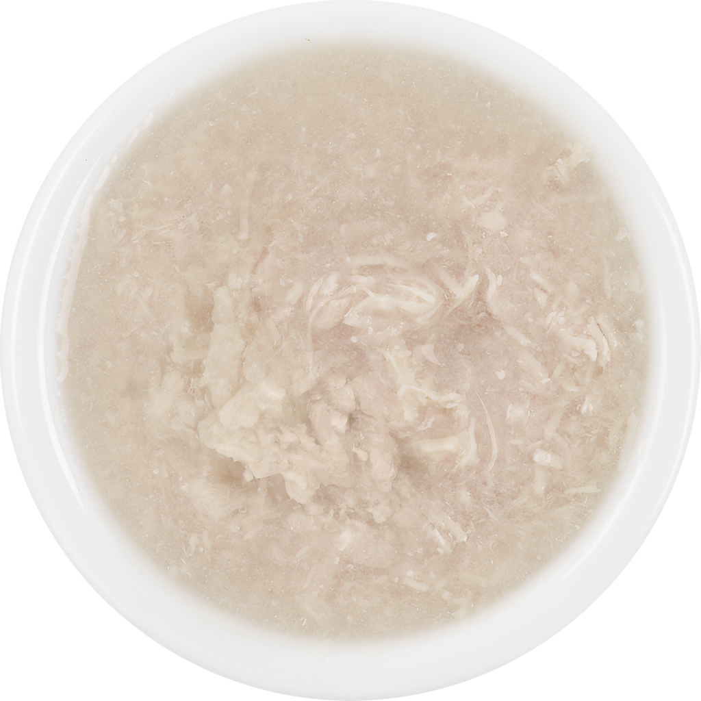 56,5 % Chicken and tuna broth, 38 % Chicken fillet, 4 % Tuna fillets, 1,5 % Tapioca starch