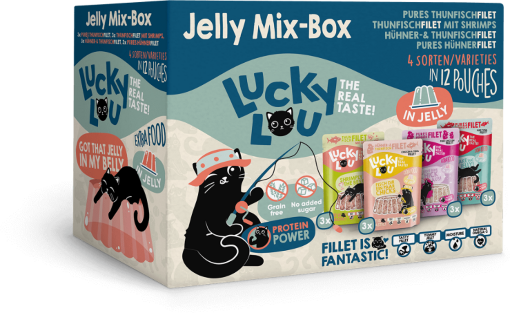 English reviews written for Lucky Lou Extra Food Pouch Jelly-Mix-Box 12x70g