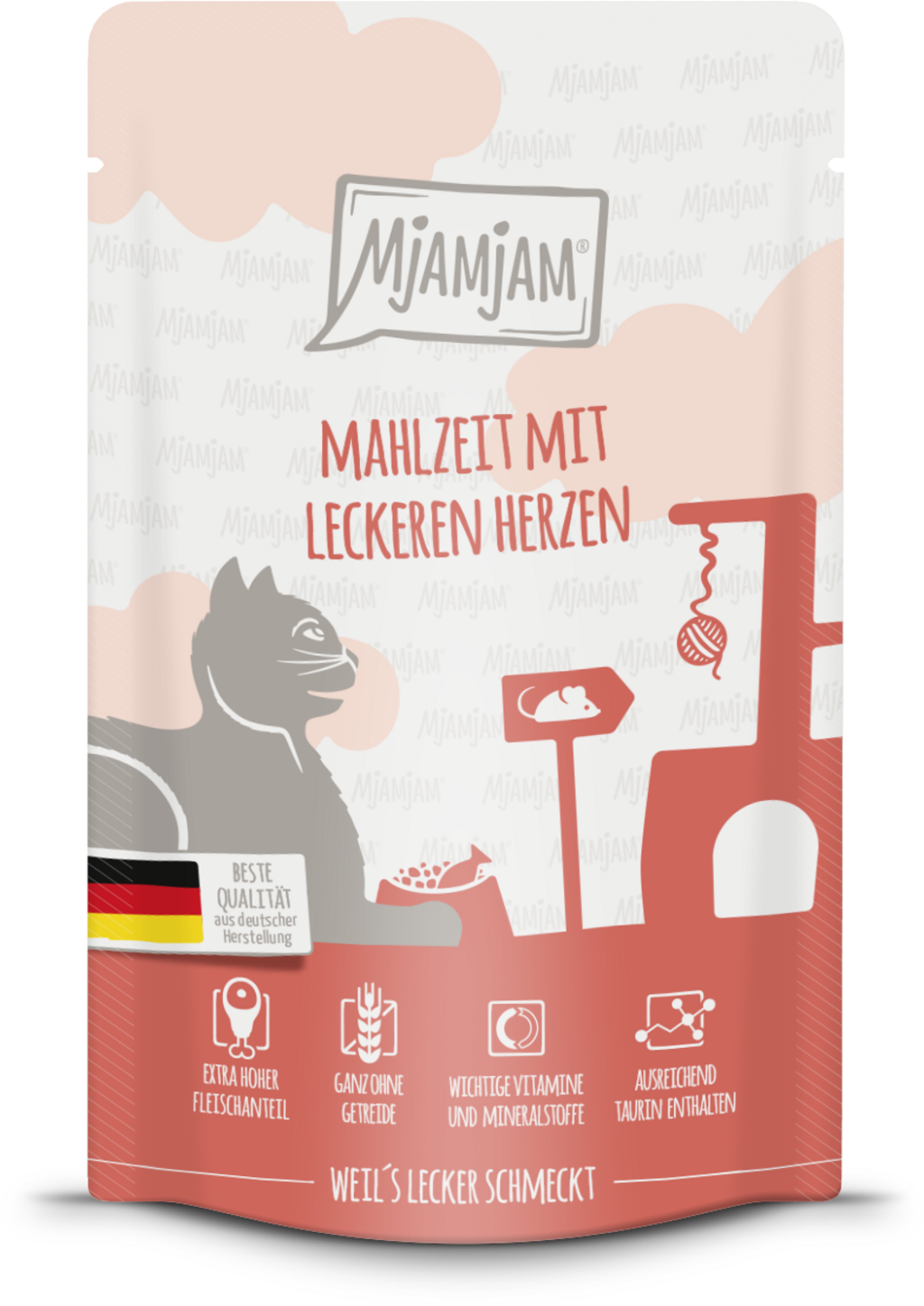 Mjamjam Portion Bags pamper your cat with rich flavours, unmatched quality, and a touch of love. Your little tiger will enjoy a wholesome meal made with fresh beef and delicious hearts, enriched with taurine to support their health and well-being—ensuring your feline friend gets everything they need.