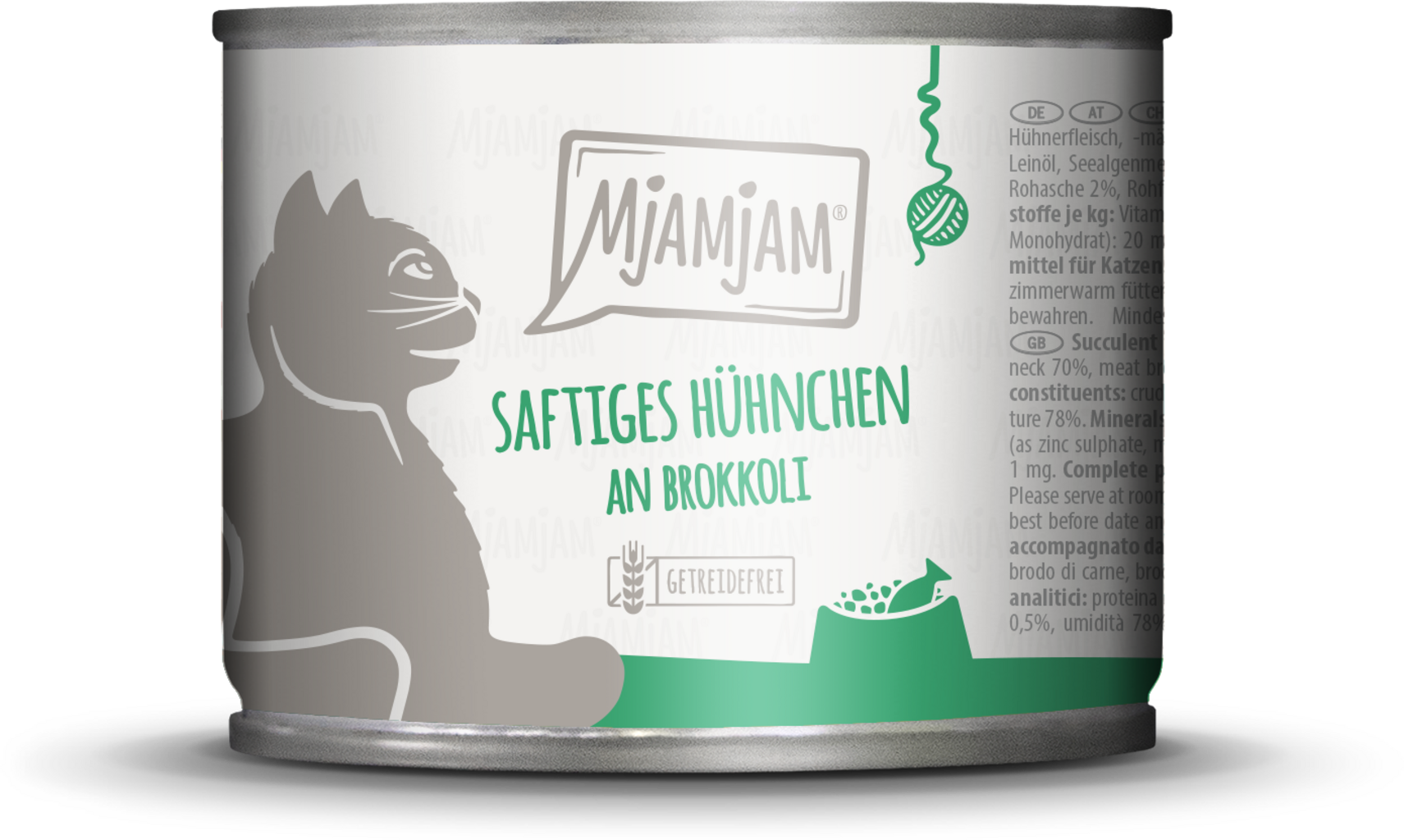 70 % Chicken (Chicken, Stomach, Liver, Neck), Meat broth, 4 % Broccoli, Minerals, Linseed oil, Seaweed meal
