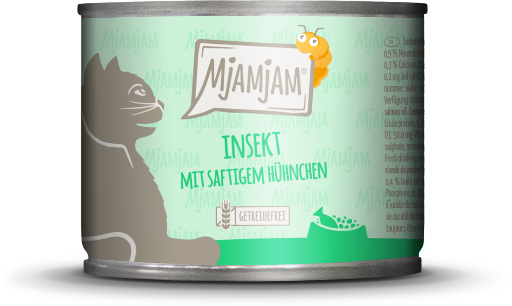 Mjamjam wet food pampers your cat with rich flavour, exceptional quality, and a touch of love. Your tiger will enjoy a wholesome meal featuring hypoallergenic insects and fresh chicken, providing everything your beloved feline needs for a healthy, balanced diet.
