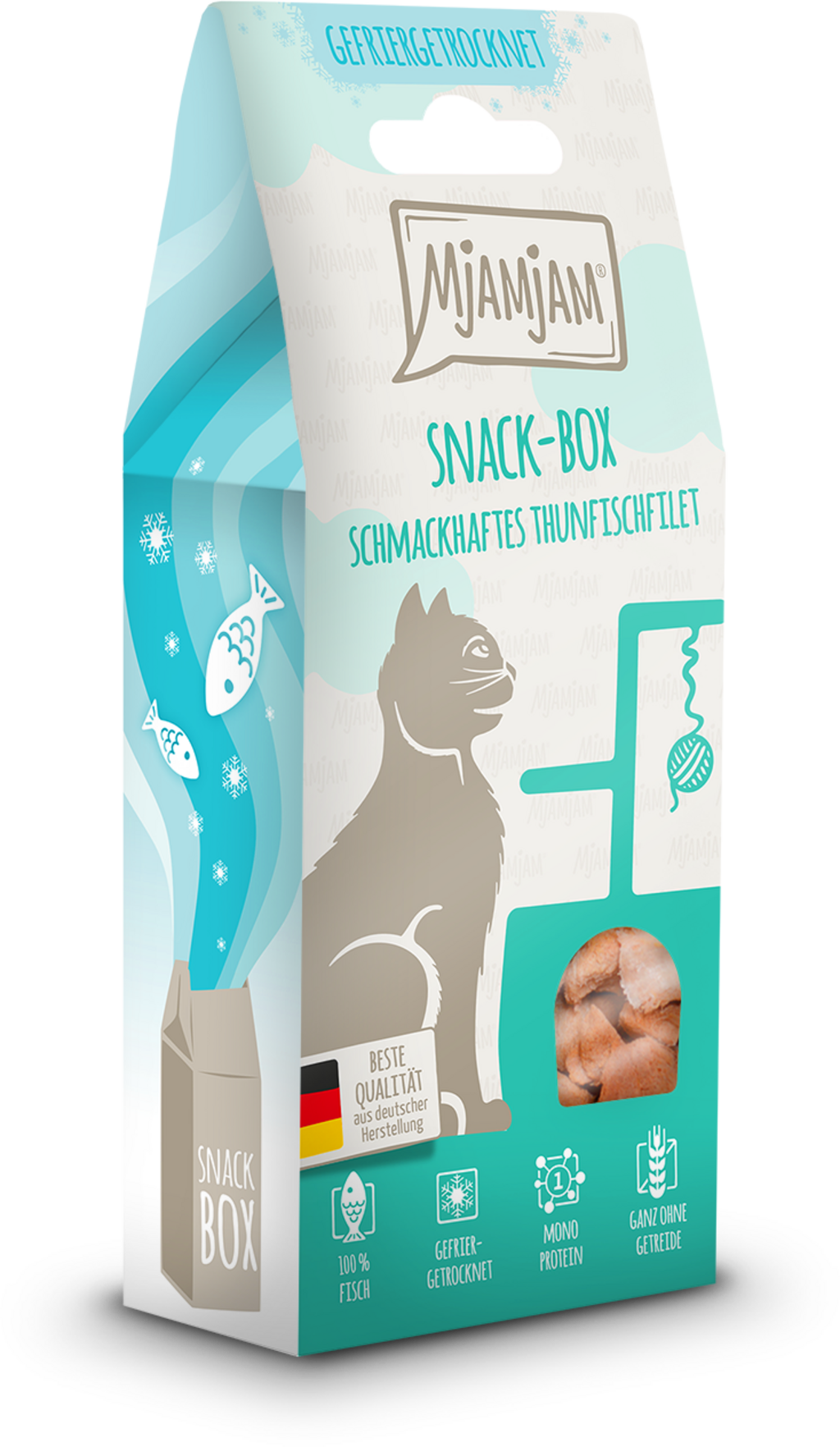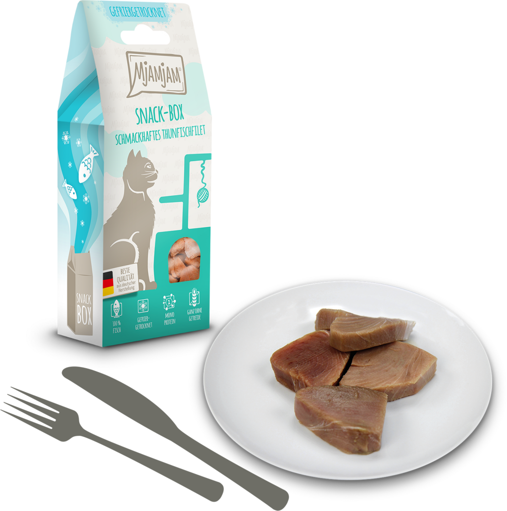 The treats from the Mjamjam Snack Box are the perfect reward for your cat and the ideal way to spoil your darling. With fresh tuna fillet, gently freeze-dried, the snack box offers a natural treat that will delight your cat.