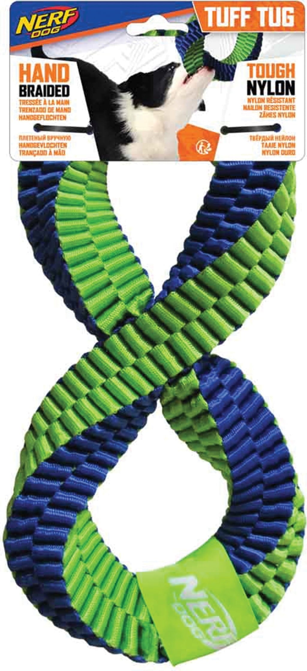 Infinity braided by Nerf is a robust tug toy for dogs. This brightly coloured toy can be easily and securely held from both ends, allowing pets and their owners to playfully test their strength, or for two dogs to tussle over the 'prey'! Perfect for dogs who love to retrieve and chew!