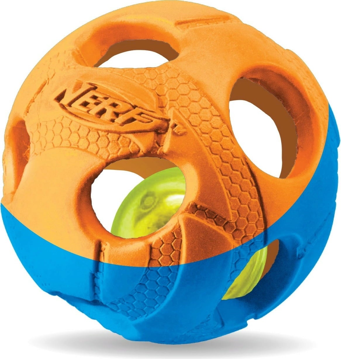 The two-coloured LED ball is not just any ball! Inside the sturdy ball made of thermoplastic (TPR) rubber, there is another rubber ball that activates when thrown or shaken, glowing in LED colours. The LED lights shine for approximately 80 hours.