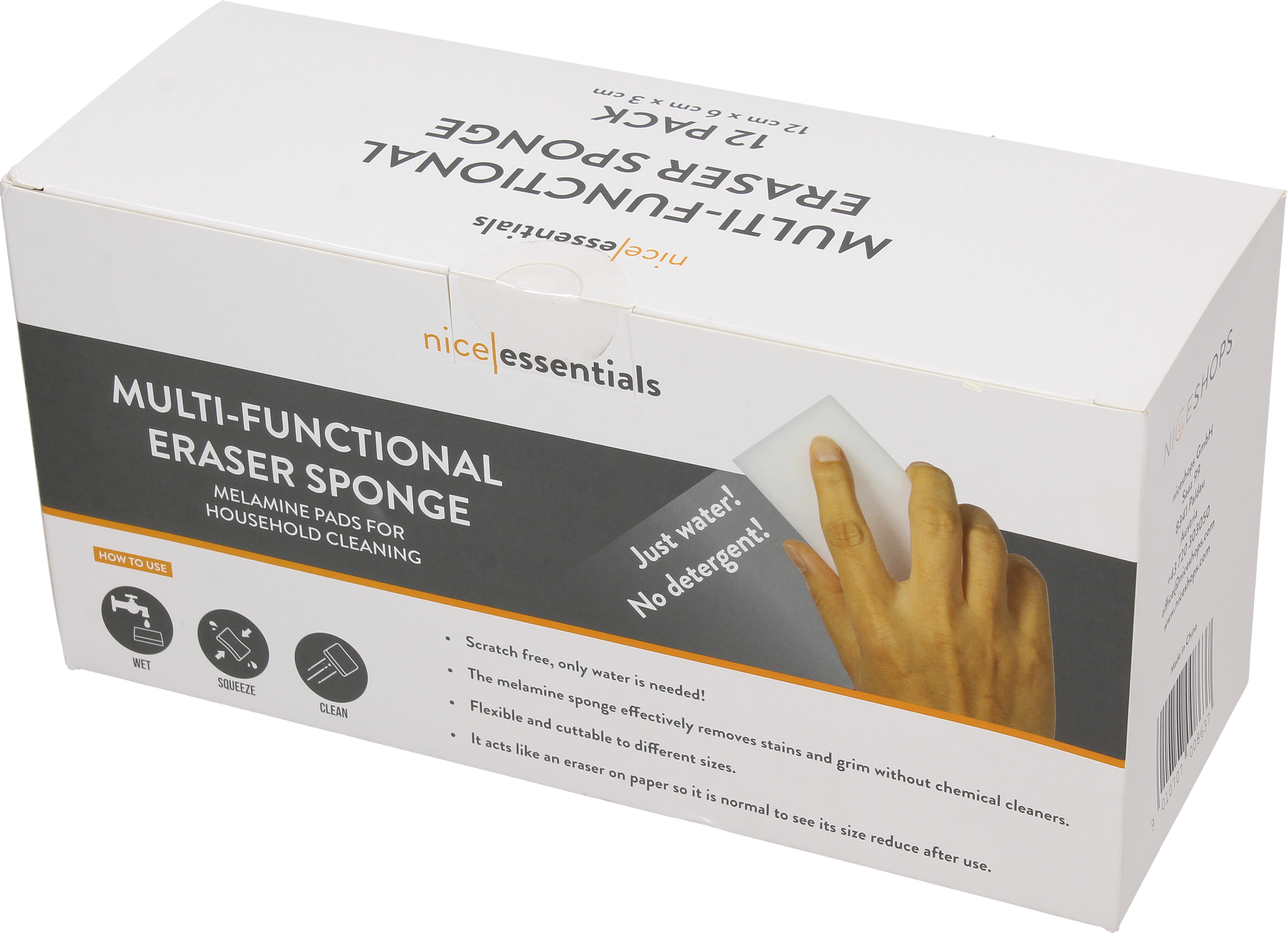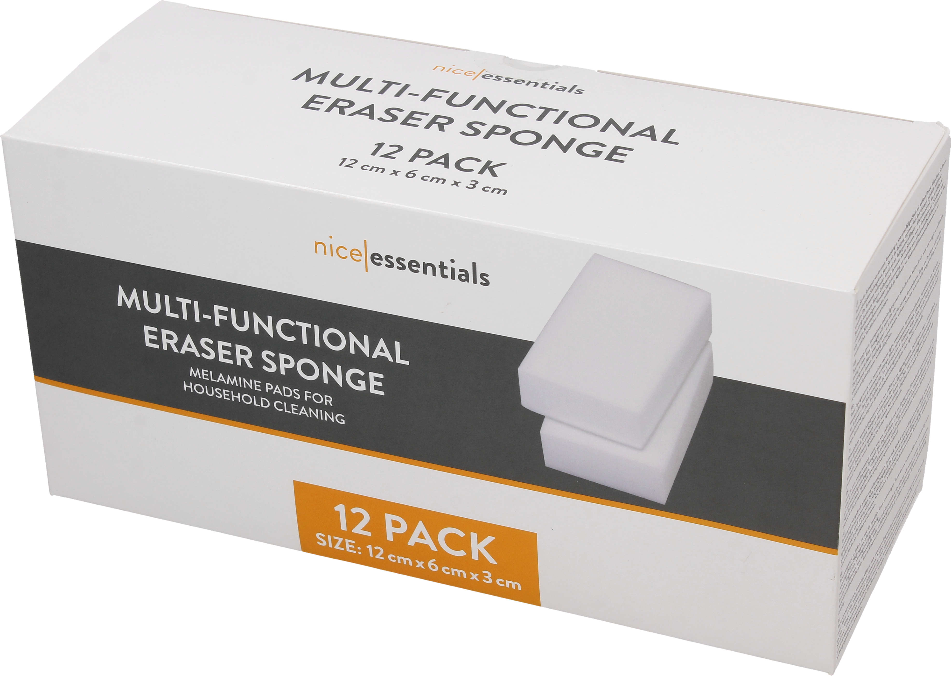 One pack contains 12 melamine cleaning sponges (12 x 6 x 3 cm).
