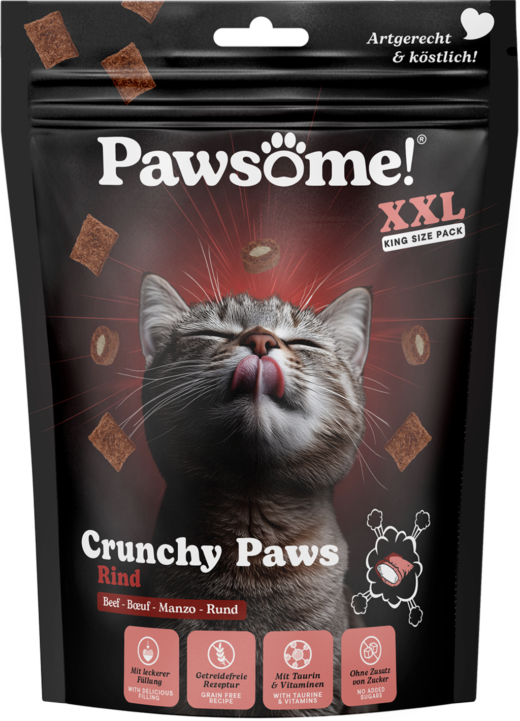 With Pawsome! Paws, every snack time becomes a delight. These crunchy treats with a delicious filling are sure to please and contain no grains or added sugar. Taurine, vitamins, brewer's yeast as a natural source of B vitamins, and catnip ensure a very special snack break.