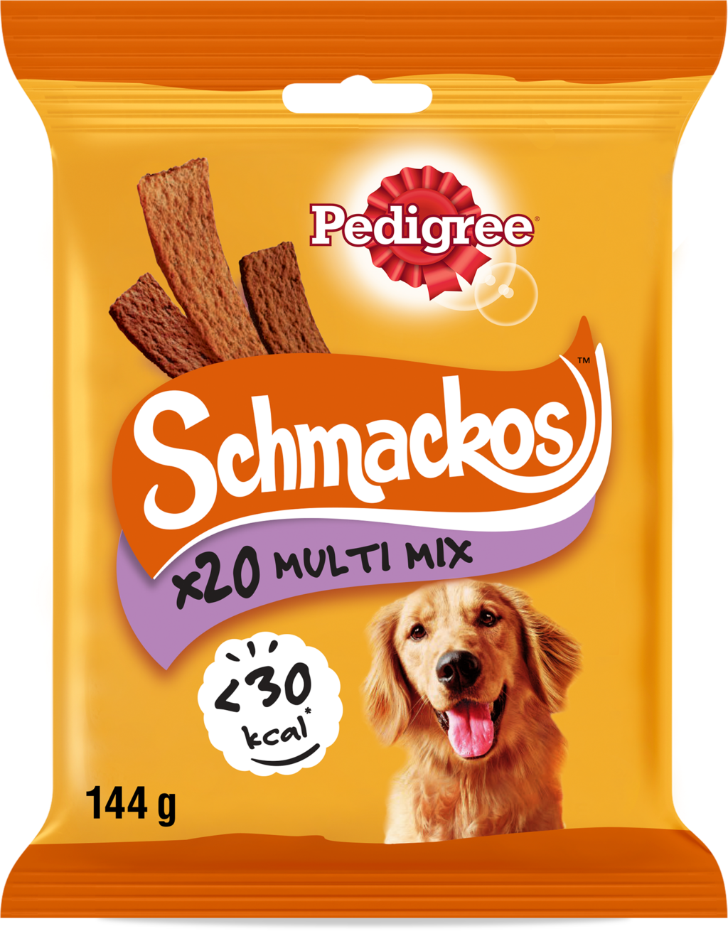 High meat content, enjoyable chewing experience: Schmackos by Pedigree are soft strips with a satisfying bite and an intense meat taste. The snack is the ideal reward when playing and training. Made with fresh meat and suitable for all dog breeds and all ages.