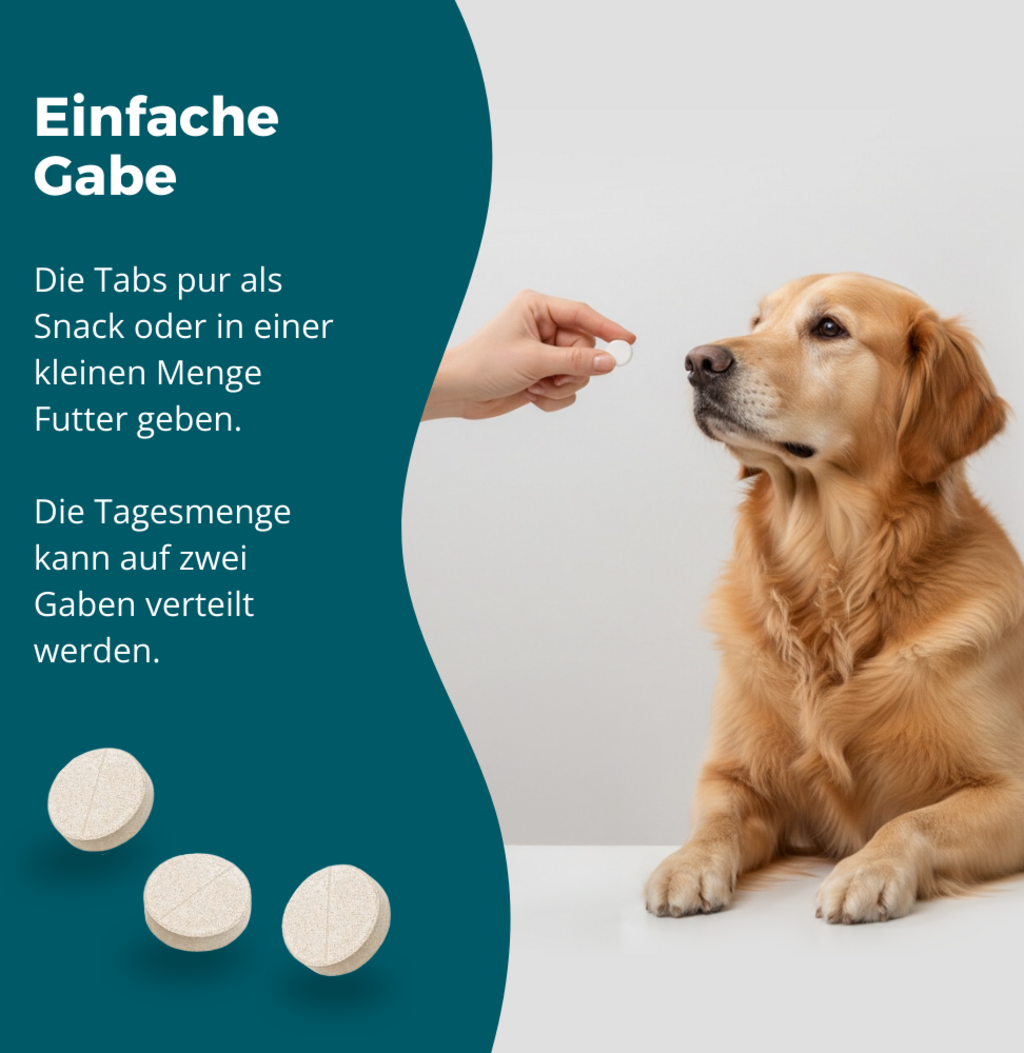 - Feed only half the recommended daily amount initially to ensure that your dog tolerates the tablets.