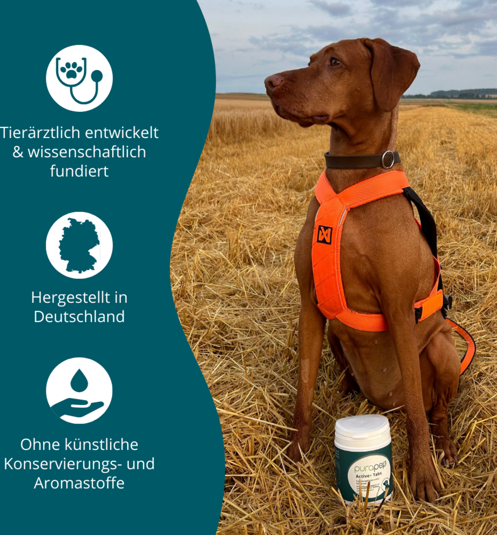 Purapep Active+ Tabs are a tasty supplement for active dogs of all ages. These chewable tablets are designed to support the joints and muscles of your furry friend, allowing them to enjoy a life full of freedom of movement.