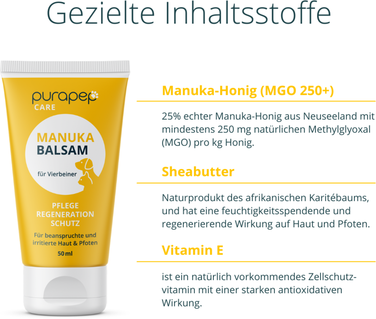 Pamper your pet's paws with purapep Care Manuka Balm. The specially formulated balm is the ideal choice for cracked paws and dry, flaky skin.