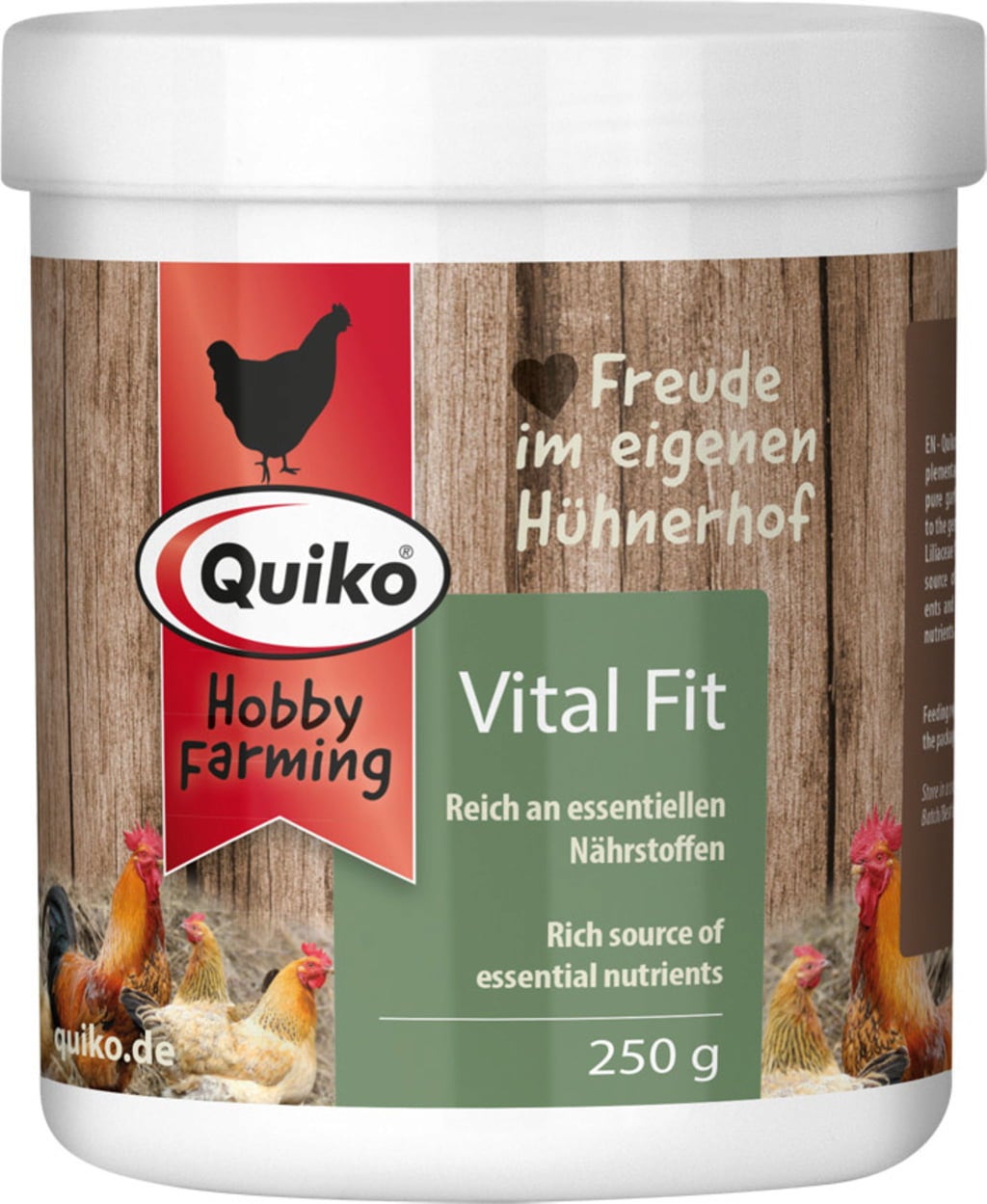 - Add 5 g (= 1 tablespoon) of Quiko HF Vital-Fit to 500 g of feed or Quiko Egg Feed daily.