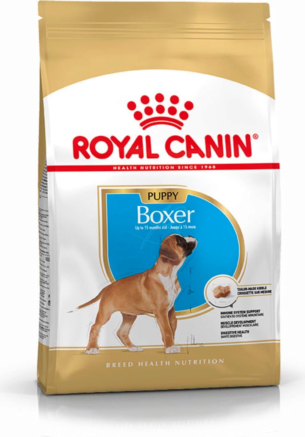 ROYAL CANIN® Boxer Puppy contains a combination of nutrients with high quality protein. These were specially selected because of their high digestibility. In addition, it includes prebiotics that help to support good digestive health and a healthy balance of intestinal flora - this ultimately contributes to good stool quality. What's more, the kibble in ROYAL CANIN® Boxer Puppy is tailor-made.