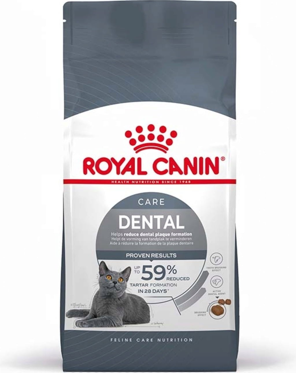 ROYAL CANIN® Dental Care dry formula is enhanced with an active dental agent which binds to the calcium in your cat’s saliva to help reduce the formation and build-up of tartar. This diet features specially designed kibble with a specific texture that helps to polish your cat’s teeth. This brushing effect helps to limit the build-up of harmful plaque and tartar during each meal.