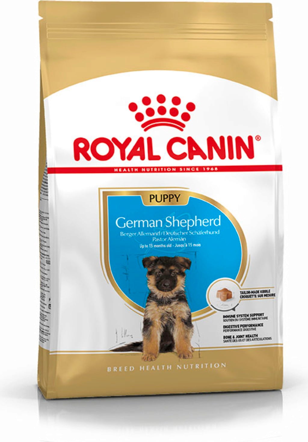 Suitable for German Shepherd Puppies up to 15 months old, ROYAL CANIN® German Shepherd Puppy is specially formulated with all the nutritional needs of your young German Shepherd in mind. The German Shepherd is solidly built, large-sized dogs. They also tend to be strong, muscular and lean when they reach adult size. That's why it's important to make sure that your puppy gets all the nutrients it needs to support the early stages of growth.